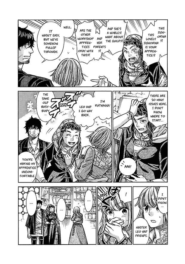 | “This manga beautifully depicts the renaissance era. ( The artist worked really hard on researching her favorite period of time! ) With every background and object intricately drawn, we hope the readers can almost feel like they’re in the Firenze of those days!The heroine, Arte, is a hard working girl who hates to lose. She faces any challenge head on, growing through adversity, and inspiring us readers living in the modern period. This story both teaches us about the past, and gives us the energy to live in the present.” | |