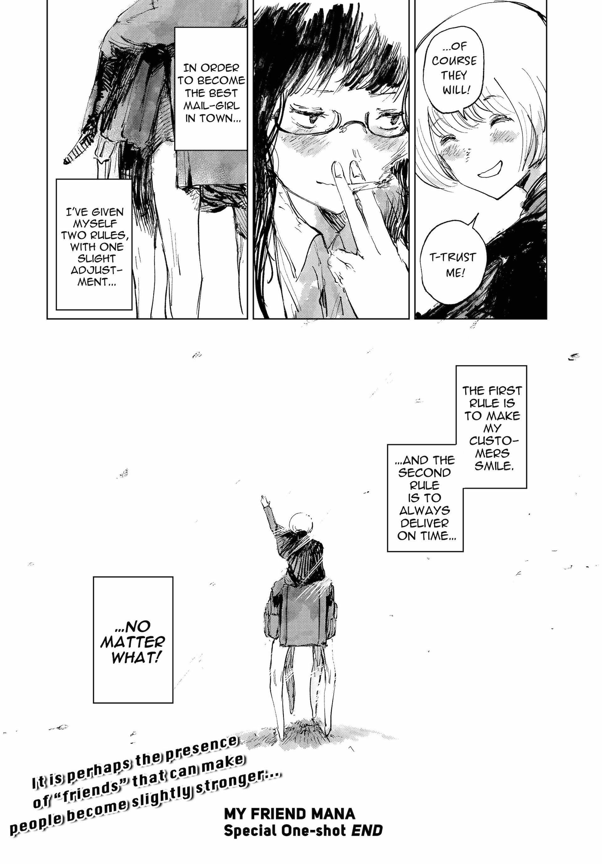 | “Praised by the ZENON Editorial Department and Akane Tamura-sensei (“A Side Character’s Love Story”), “My Friend Mana” tells the story of young and naive protagonist Lisa, a mail-carrier with a strong sense of friendship towards Mana, a clumsy inventor who wants to be useful to her community. One day Mana disappears, and it’s Lisa’s duty to go and find her. The only problem is that to find Mana, Lisa must go past the gates and outside the safety of her town, something that she has never done before!” | |