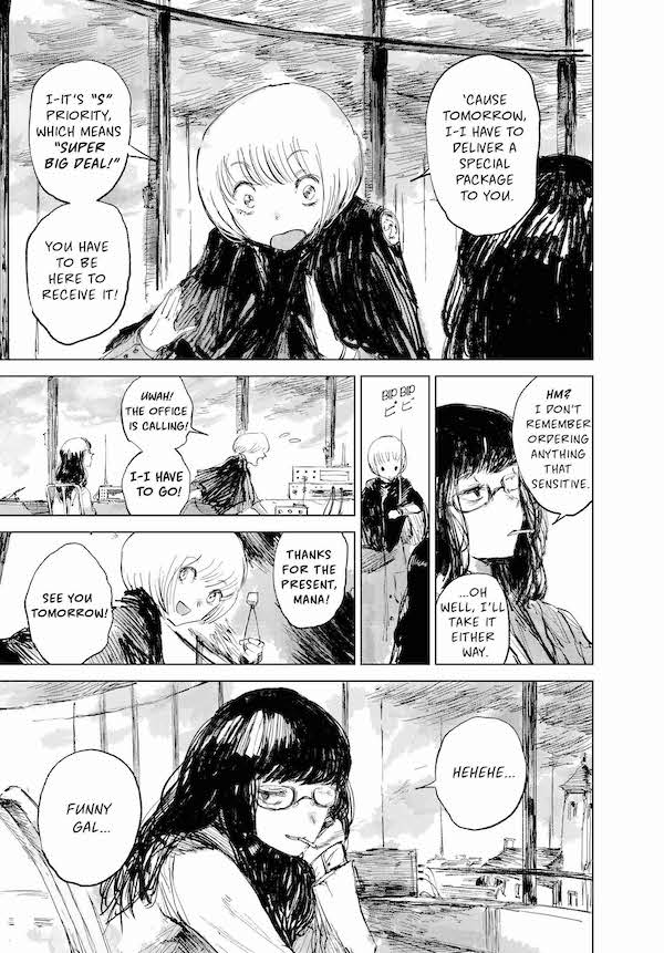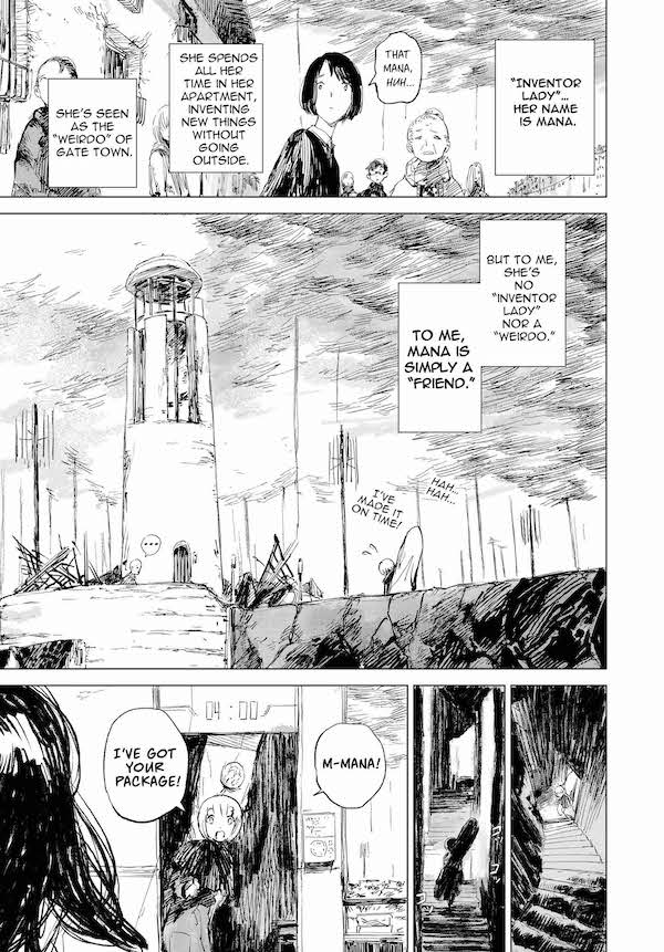 | “Praised by the ZENON Editorial Department and Akane Tamura-sensei (“A Side Character’s Love Story”), “My Friend Mana” tells the story of young and naive protagonist Lisa, a mail-carrier with a strong sense of friendship towards Mana, a clumsy inventor who wants to be useful to her community. One day Mana disappears, and it’s Lisa’s duty to go and find her. The only problem is that to find Mana, Lisa must go past the gates and outside the safety of her town, something that she has never done before!” | |