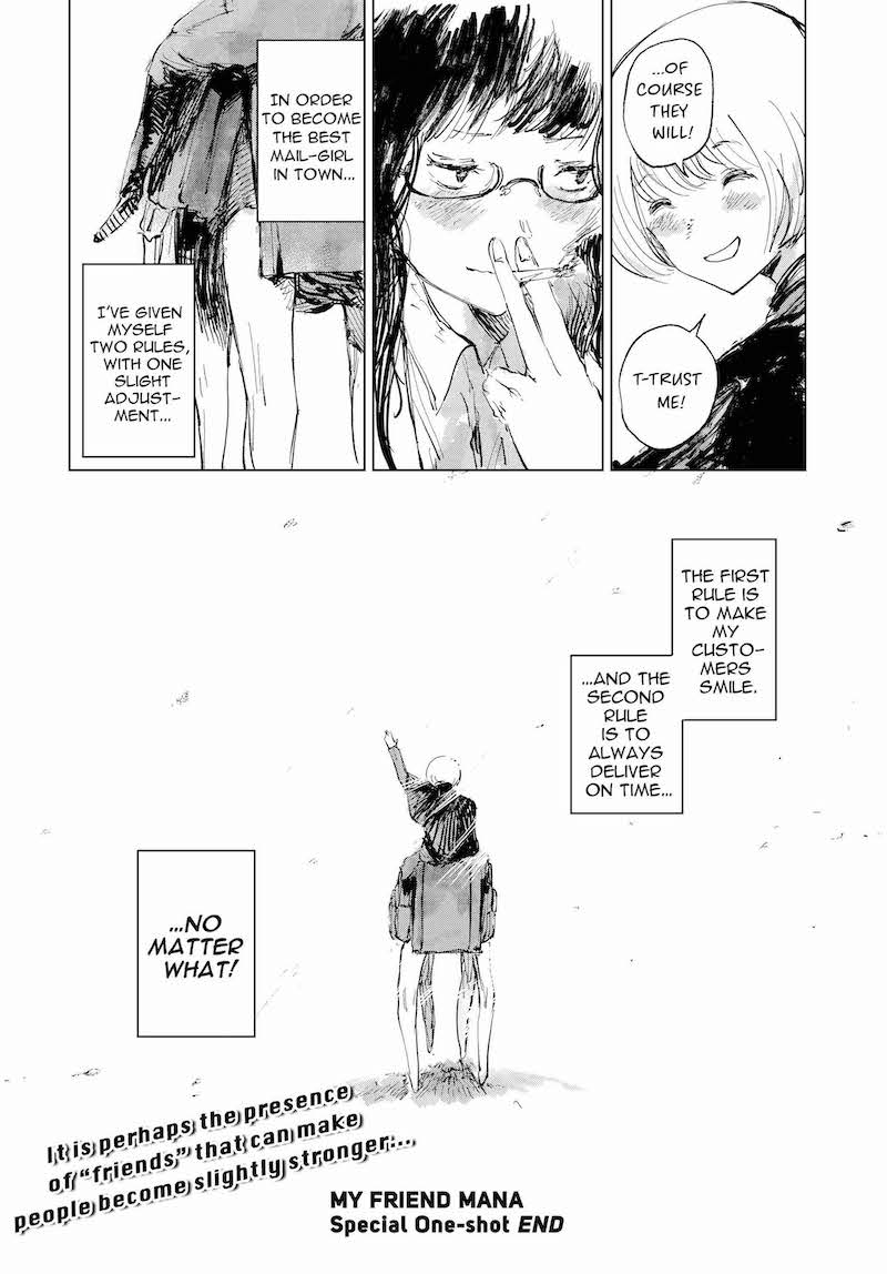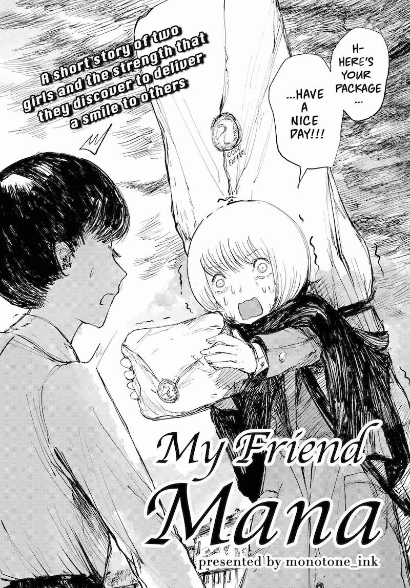 | “Praised by the ZENON Editorial Department and Akane Tamura-sensei (“A Side Character’s Love Story”), “My Friend Mana” tells the story of young and naive protagonist Lisa, a mail-carrier with a strong sense of friendship towards Mana, a clumsy inventor who wants to be useful to her community. One day Mana disappears, and it’s Lisa’s duty to go and find her. The only problem is that to find Mana, Lisa must go past the gates and outside the safety of her town, something that she has never done before!” | |