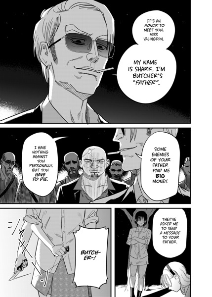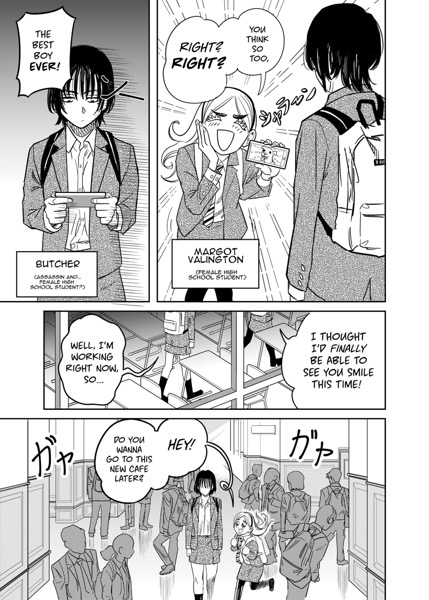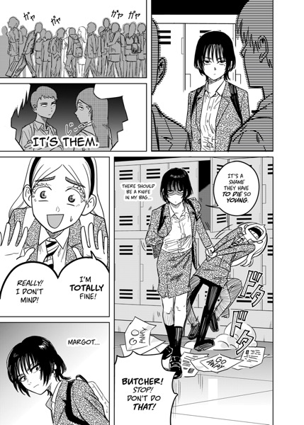 | “Butcher was raised to be an elite assassin, and has worked as an assassin her entire life. However, when she is assigned to be the bodyguard for Margot Valington, a high school girl and the daughter of a mafia boss, she has to adapt to student life. Butcher is deathly serious, while Margot is peppy and upbeat; they’re an odd combination, but as they grow closer, Butcher learns that Margot has her own struggles. However, when the plan changes, Butcher suddenly has to choose between her life as an assassin - the only life she knows - and her new friend. What will Butcher choose? Dive into this manga by ryancomicpress, who won the Excellence Award Runner-up for this story of an unlikely, yet heartfelt friendship in the 11th Kyushu International Manga Award!” | |