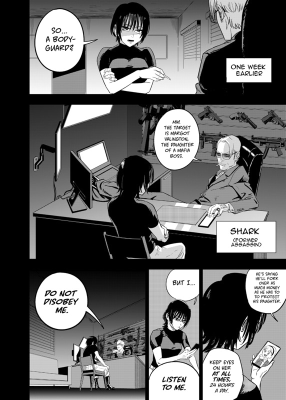 | “Butcher was raised to be an elite assassin, and has worked as an assassin her entire life. However, when she is assigned to be the bodyguard for Margot Valington, a high school girl and the daughter of a mafia boss, she has to adapt to student life. Butcher is deathly serious, while Margot is peppy and upbeat; they’re an odd combination, but as they grow closer, Butcher learns that Margot has her own struggles. However, when the plan changes, Butcher suddenly has to choose between her life as an assassin - the only life she knows - and her new friend. What will Butcher choose? Dive into this manga by ryancomicpress, who won the Excellence Award Runner-up for this story of an unlikely, yet heartfelt friendship in the 11th Kyushu International Manga Award!” | |