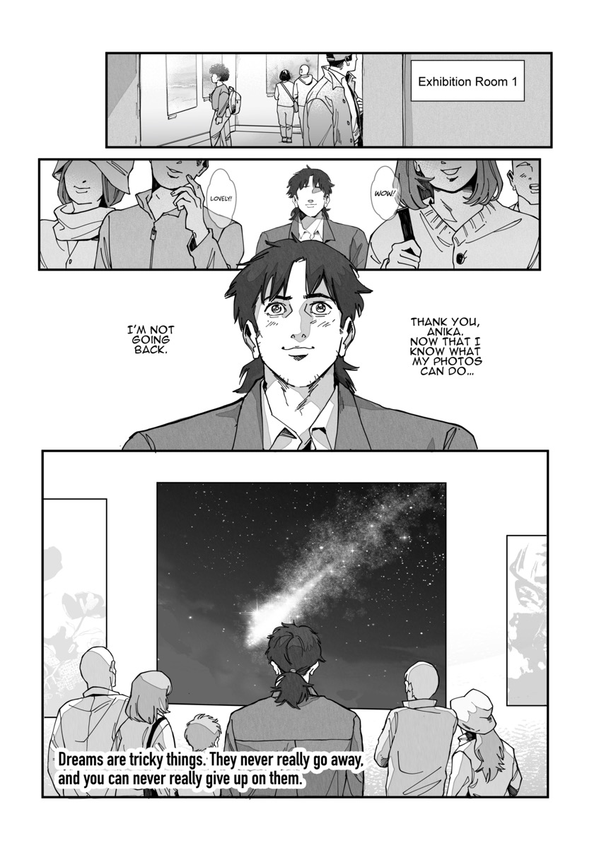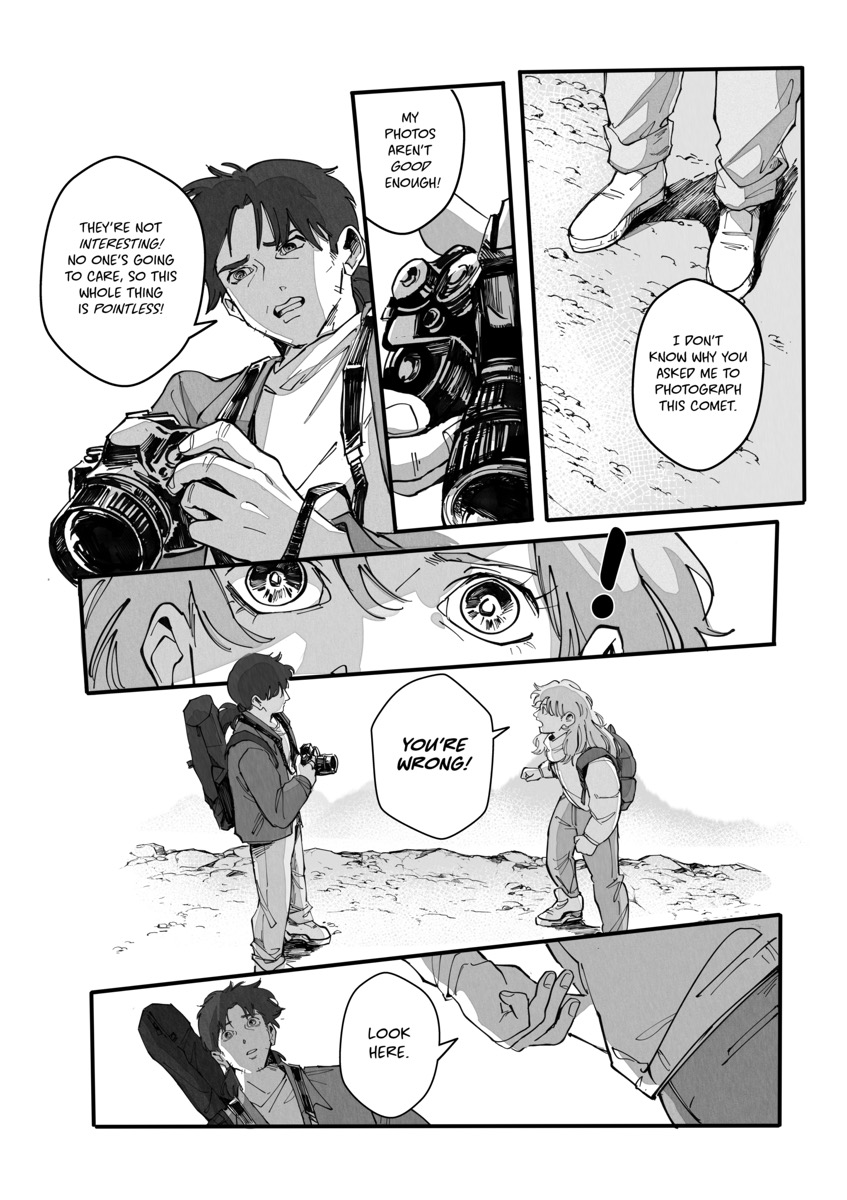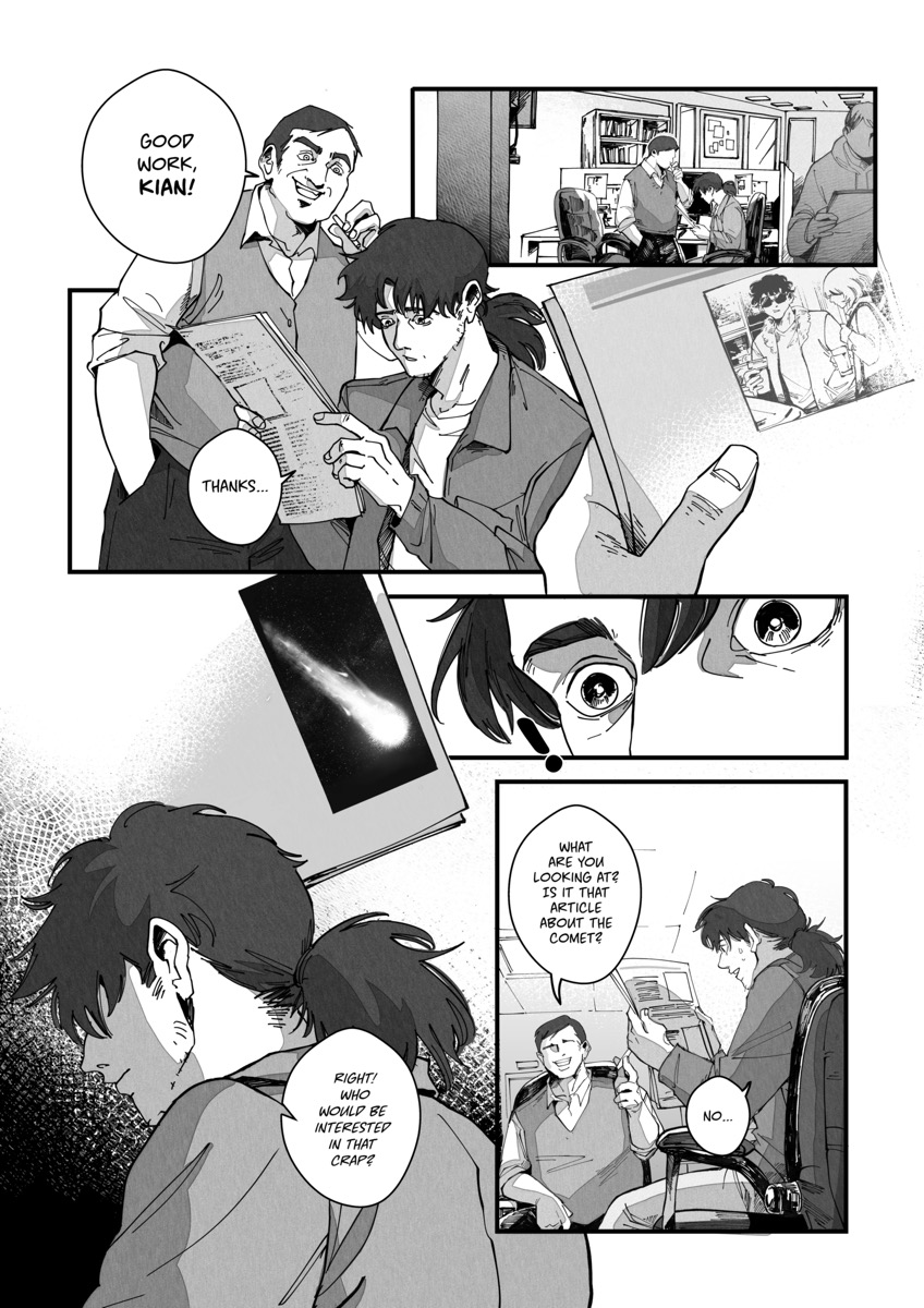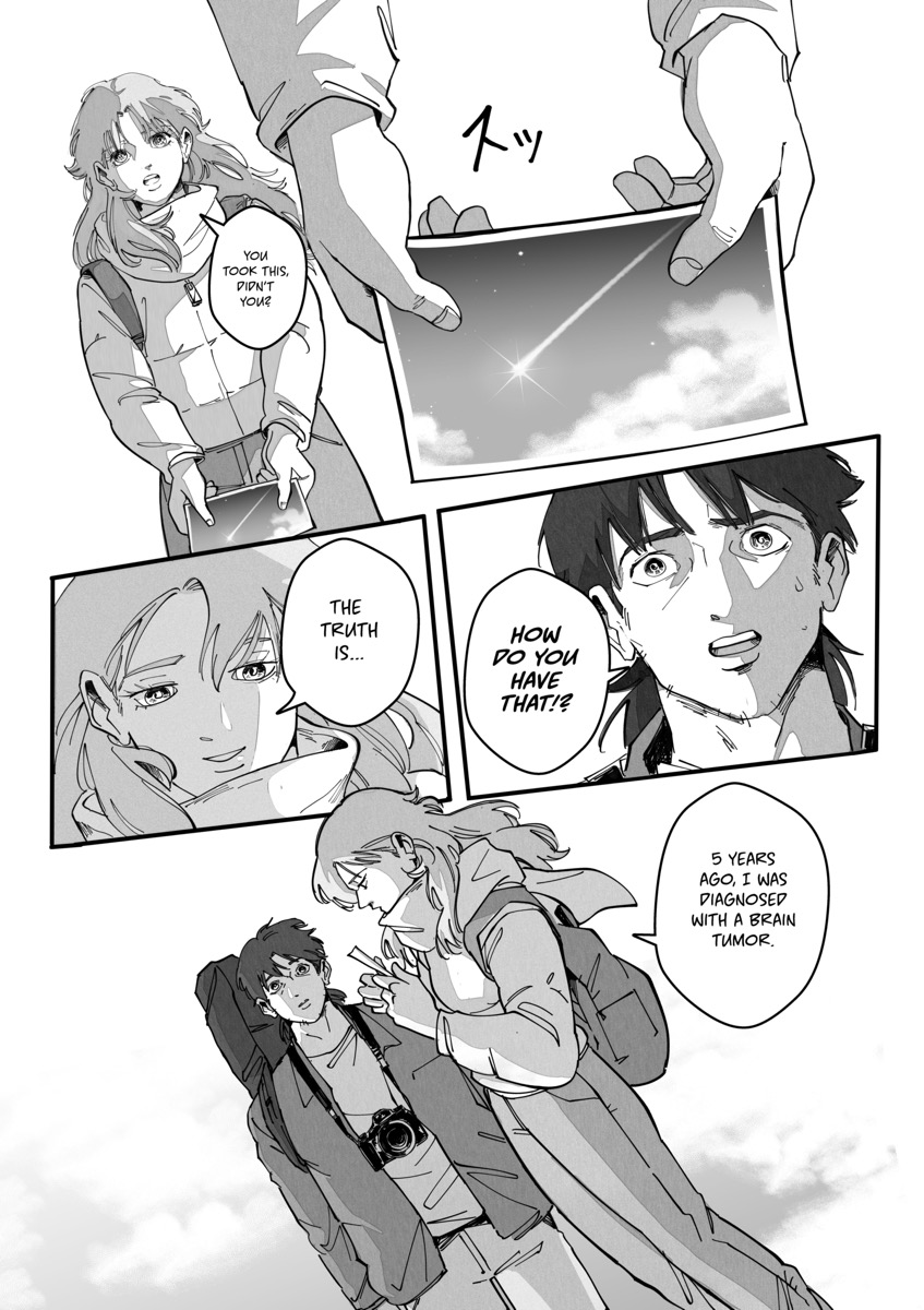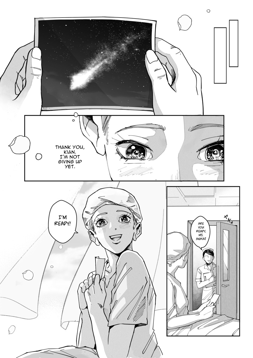 | “Kian gave up on his dreams a long time ago, and is now resigned to his job as a paparazzo. However, when he meets a mysterious young actress, long-suppressed feelings once again float to the surface. Do dreams ever truly die? Or do long-diminished dreams simply need a spark to reignite? Follow Kian and the actress, Anika, on their journey to photograph a rare comet, and in the process, find the bravery to dream.” | |