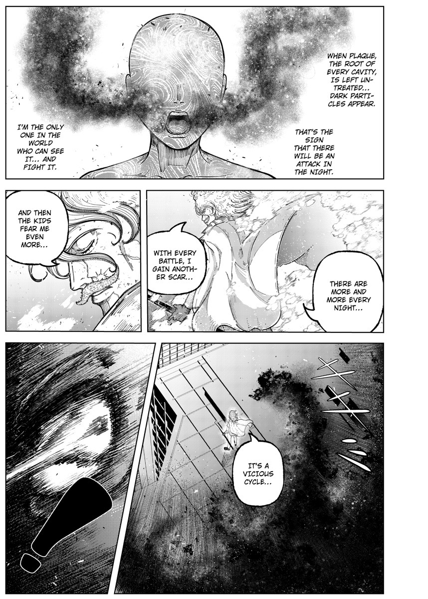 “Dentist Mentaro Brushido might appear scary to his young patients, but there is more to him than meets the eye! The battle to protect children’s dental health is more complicatedーand more violentーthan anyone may have guessed. This unexpected hero is on the front lines of that battle, protecting children’s smiles with a toothbrush and a dream! Check out The Nightmare Dentist by French creator MonsterJaja, which won the top prize in the 14th Kyushu International Manga Award!”