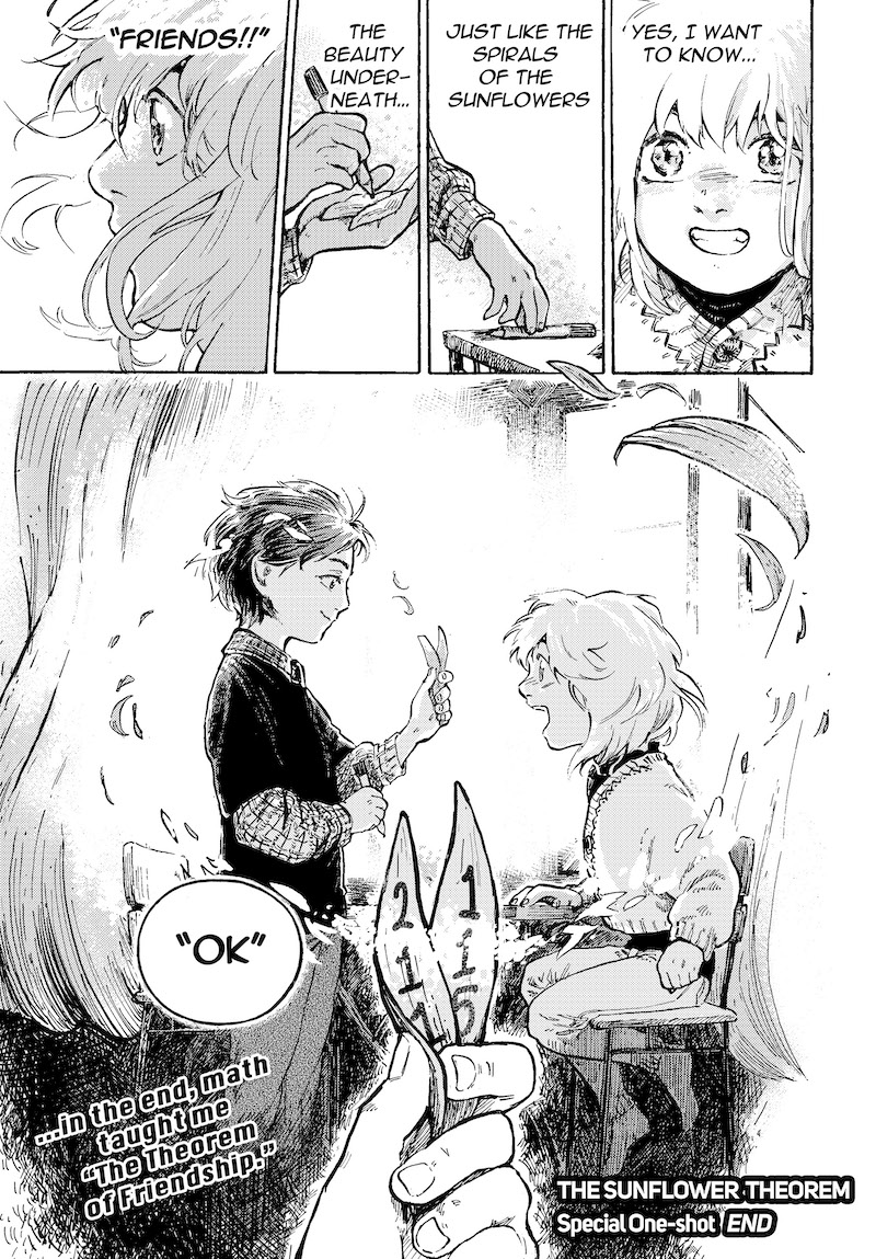 “The Sunflower Theorem” tells the story of Noe, a very special girl with a great passion for math and the ability to see it in the beauty of nature and daily life. For this reason, Noe doesn't have many friends that can understand her, but this doesn't bother the young girl as long she has her beloved numbers with her. However, everything will change for Noe once a new classmate, Maika, arrives to math class...”