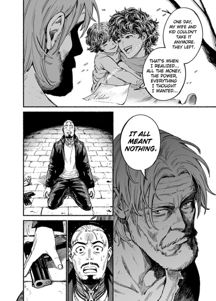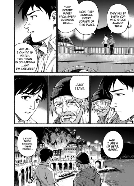 “The story follows Santo, a man so feared and respected in the criminal underworld that people are afraid to even speak his name…One day, this cruel king of crime burns his empire to the ground, as if on a whim, and vanishes. Years later, a nameless, homeless drifter, arrives in the Italian port town of San Rossi, searching for the family that abandoned him. There, he finds not what he’s looking for, but rather a city ruled by fear and a young police officer who cannot uphold justice alone. As the drifter becomes more embroiled in local power struggles, his shadowy past is slowly illuminated…”