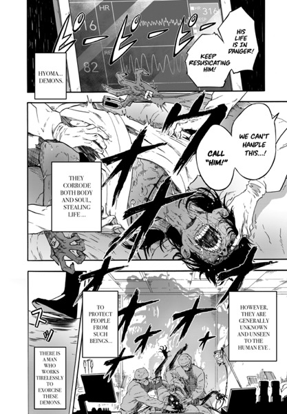 “In this world, there are invisible beings called "hyoma." They dwell in the darkness of people's hearts, eventually taking their lives. To protect people from these dark beings, there is one man who continues to exorcise demons alone... An occult battle fantasy by MasterClass member Sideburn featuring a hero who is both an exorcist and a doctor begins NOW!!”