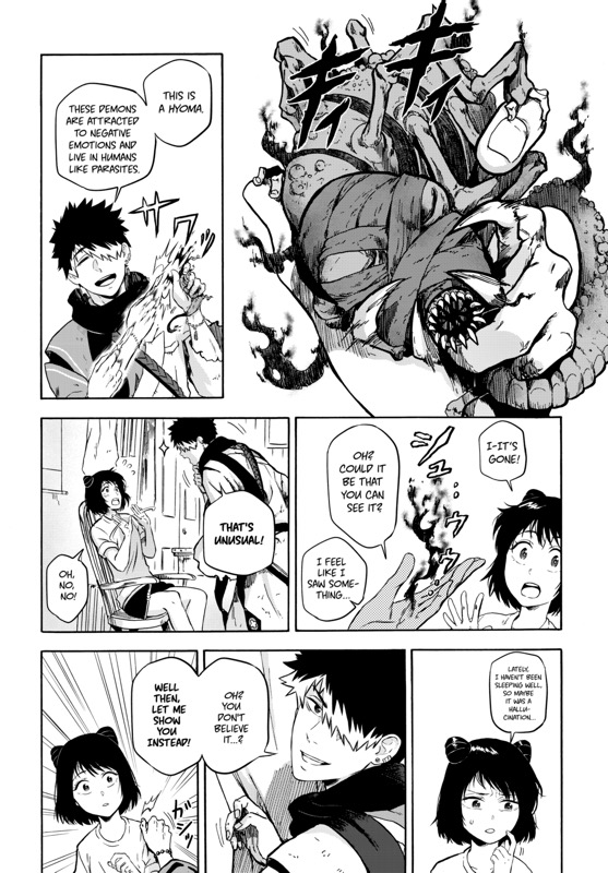 | “In this world, there are invisible beings called "hyoma." They dwell in the darkness of people's hearts, eventually taking their lives. To protect people from these dark beings, there is one man who continues to exorcise demons alone... An occult battle fantasy by MasterClass member Sideburn featuring a hero who is both an exorcist and a doctor begins NOW!!” | |