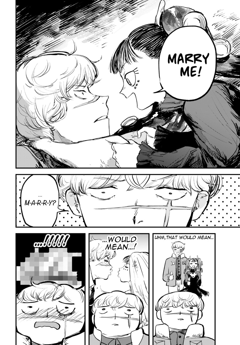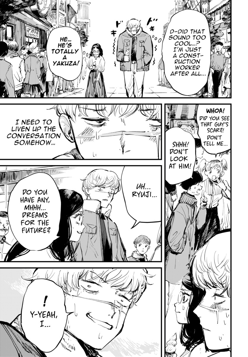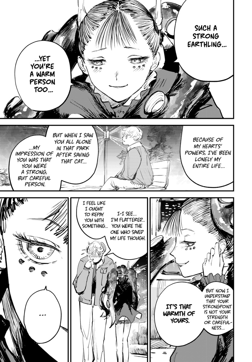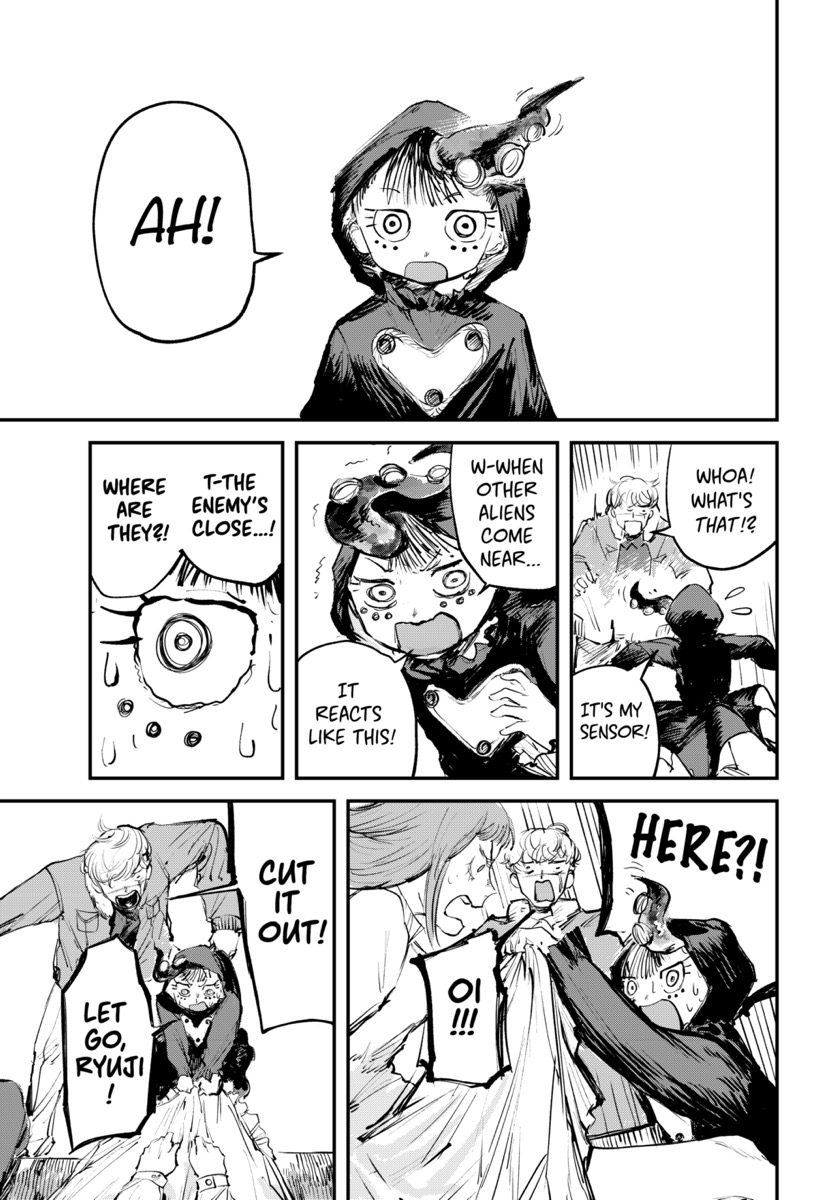 | “Ryuuji has an innocent dream: to get married and have a happy family. However, his intimidating appearance and lack of social skills make him entirely unappealing to women, and every date he goes on ends in disaster. One day, a peculiar but beautiful woman appears before him, claiming to be an alien and suddenly proposing marriage! The strongest social contract on Earth sets off an uproar of a cosmic scale. This new one-shot by monotone_ink, winner of both the Kyushu International Manga Award and the Comic ZENON Manga Taisho, invites you to enjoy a grand spectacle of space, intergalactic battle, and love! ” | |
