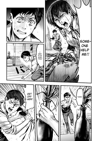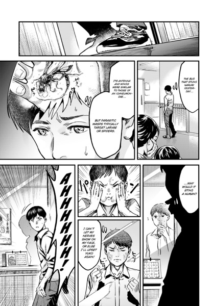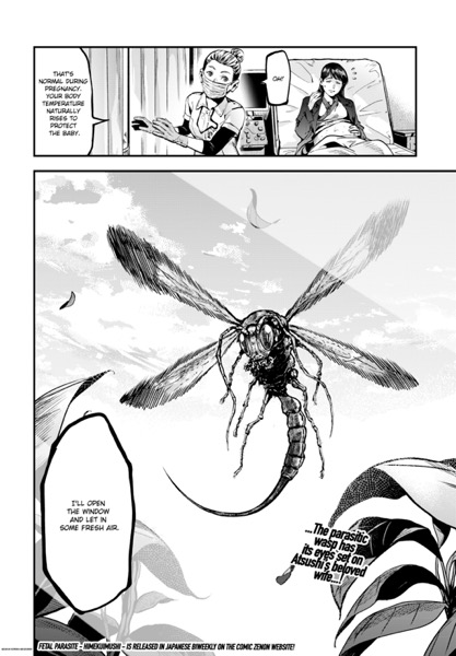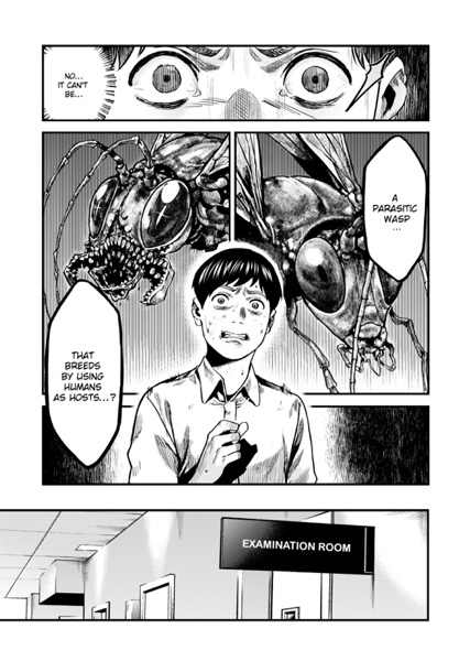 “Atsushi Saito and his wife, Yuko, are about to start a new chapter of their lives. Yuko is nearly ready to give birth, and Atsushi diligently visits her at the hospital where she’s staying. Atsushi is on one such visit when a mysterious, parasitic wasp that targets pregnant women appears! Faced with this unprecedented horror, can Atsushi protect his beloved wife and their unborn child…? This chapter is published in English exclusively for SMA readers to enjoy! Fetal Parasite marks Tati’s (DS Studio) Japanese manga debut. She’s the first SMA MasterClass member to have an original manga serialized in Japanese! Fetal Parasite can be read biweekly on the official Comic ZENON Website!”