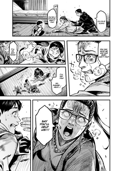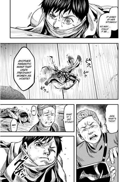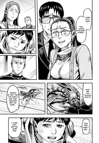 | “Atsushi Saito and his wife, Yuko, are about to start a new chapter of their lives. Yuko is nearly ready to give birth, and Atsushi diligently visits her at the hospital where she’s staying. Atsushi is on one such visit when a mysterious, parasitic wasp that targets pregnant women appears! Faced with this unprecedented horror, can Atsushi protect his beloved wife and their unborn child…? This chapter is published in English exclusively for SMA readers to enjoy! Fetal Parasite marks Tati’s (DS Studio) Japanese manga debut. She’s the first SMA MasterClass member to have an original manga serialized in Japanese! Fetal Parasite can be read biweekly on the official Comic ZENON Website!” | |