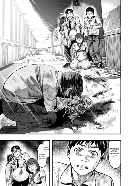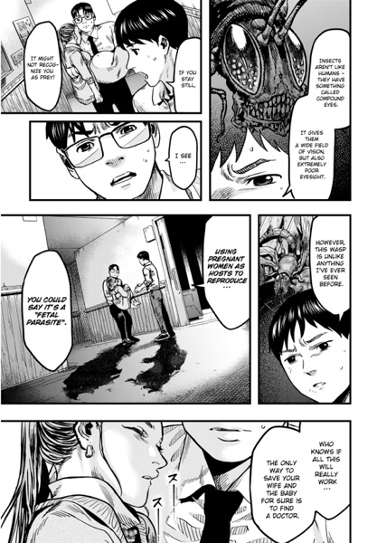 | “Atsushi Saito and his wife, Yuko, are about to start a new chapter of their lives. Yuko is nearly ready to give birth, and Atsushi diligently visits her at the hospital where she’s staying. Atsushi is on one such visit when a mysterious, parasitic wasp that targets pregnant women appears! Faced with this unprecedented horror, can Atsushi protect his beloved wife and their unborn child…? This chapter is published in English exclusively for SMA readers to enjoy! Fetal Parasite marks Tati’s (DS Studio) Japanese manga debut. She’s the first SMA MasterClass member to have an original manga serialized in Japanese! Fetal Parasite can be read biweekly on the official Comic ZENON Website!” | |
