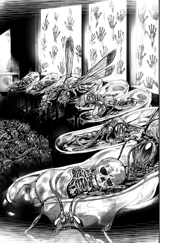 | “Atsushi Saito and his wife, Yuko, are about to start a new chapter of their lives. Yuko is nearly ready to give birth, and Atsushi diligently visits her at the hospital where she’s staying. Atsushi is on one such visit when a mysterious, parasitic wasp that targets pregnant women appears! Faced with this unprecedented horror, can Atsushi protect his beloved wife and their unborn child…? This chapter is published in English exclusively for SMA readers to enjoy! Fetal Parasite marks Tati’s (DS Studio) Japanese manga debut. She’s the first SMA MasterClass member to have an original manga serialized in Japanese! Fetal Parasite can be read biweekly on the official Comic ZENON Website!” | |