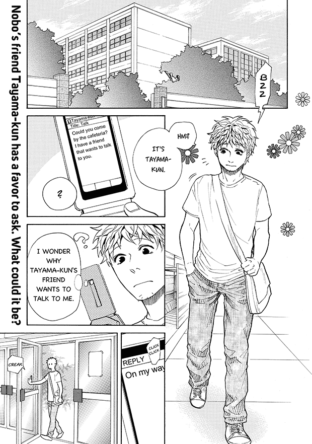 “Invisible but cute? Sweet life with a ghost girlfriend ♥ Rumours are flying around college that Yasuhisa Nobo has a new girlfriend… but no one has ever seen her?! The heart-warming tale of the (for some reason?!) popular Nobo and his invisible ghostly girlfriend♪”