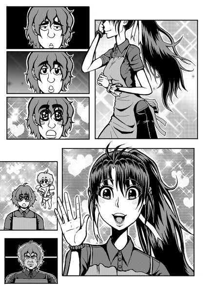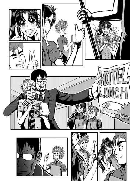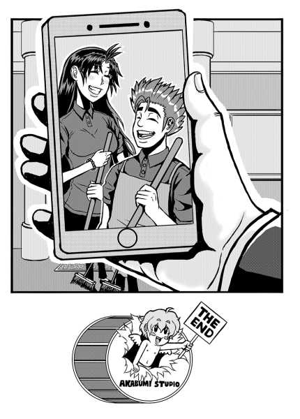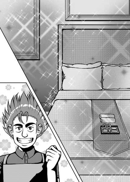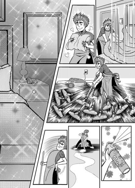 “Sometimes in order to enjoy your day job, you must change your view of it. For instance, if you don't like your day job, just imagine yourself in a different scenario. Think of the co-worker you hate as an evil witch and think of yourself as a hero in a story. In this case, housekeeping work is not an easy task. It takes full effort just to make up room, clean the toilet, etc. I've got my inspiration for this manga from my day job.”