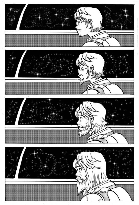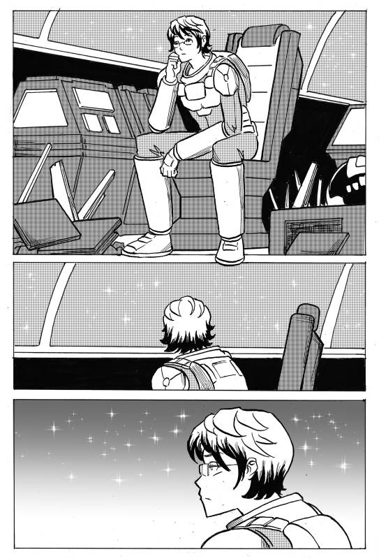 | “This is an adventure story. I always wanted to draw a spaceship and astronaut futuristic clothes.” | |