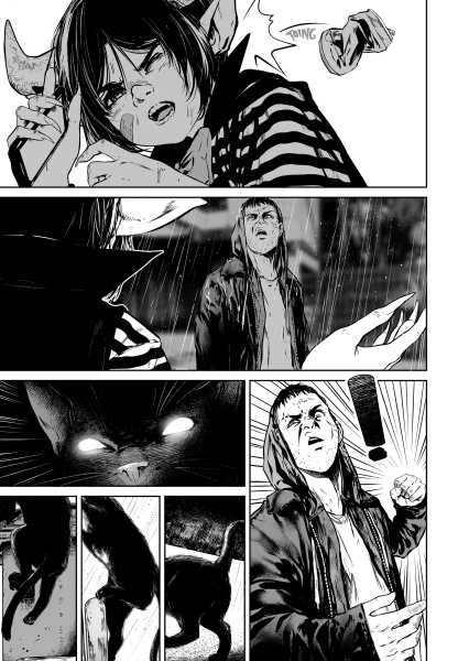 | “I've tried to make a funny story with two simply concepts that I love, cats and horror movies and represent with that the traditional shonen manga values, effort, friendship and victory, hope you like it!” | |
