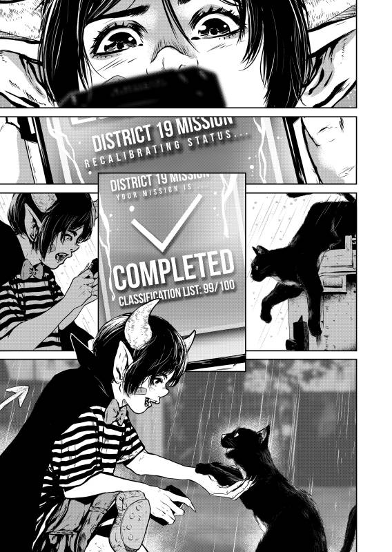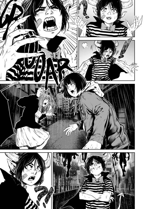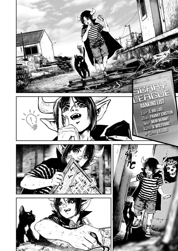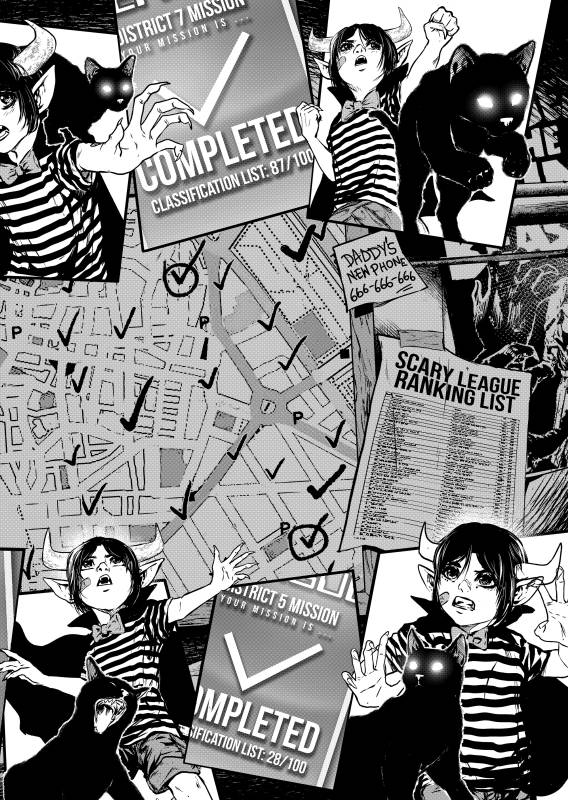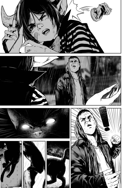 “I've tried to make a funny story with two simply concepts that I love, cats and horror movies and represent with that the traditional shonen manga values, effort, friendship and victory, hope you like it!”