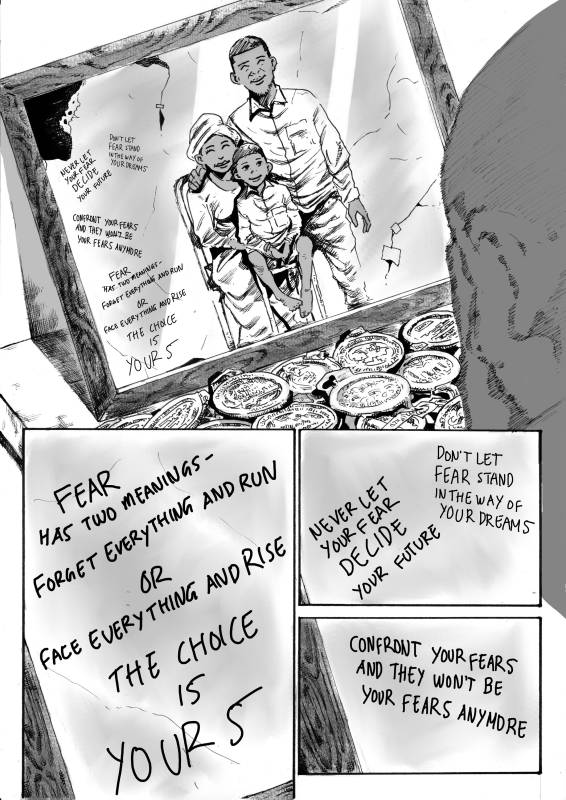 “when he dared to face his past trauma and when he managed to defeat his fear”