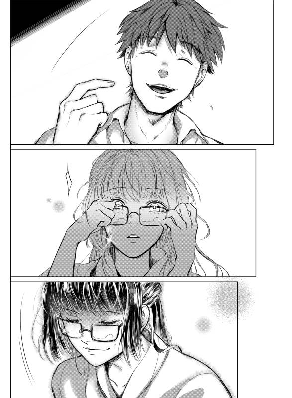 | “Well, I love the process of thinking out my stories of course. But my favourite part was when I realized I was feeling complete as I drew it, as if I was doing the right thing for myself. I never felt so happy while doing my previous illustrator jobs. Making a manga, seeing a page slowly come together, gives me an awesome feeling of accomplishment.” | |