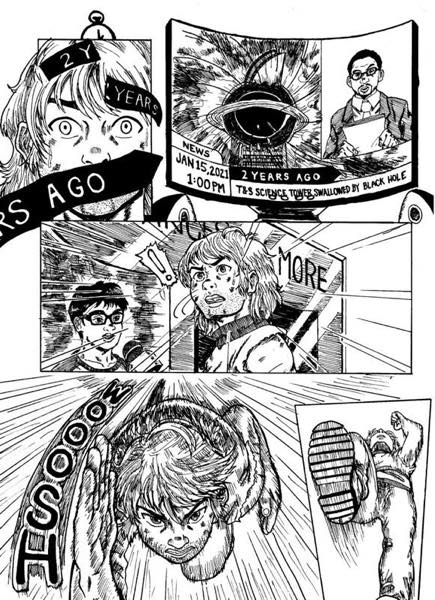 “My favourite part was drawing the T-Rex and the final page. I can only draw for a limited time per day because I have a full-time job, so I've been thinking about those pages for an entire month and I'm happy with how it turned out.”