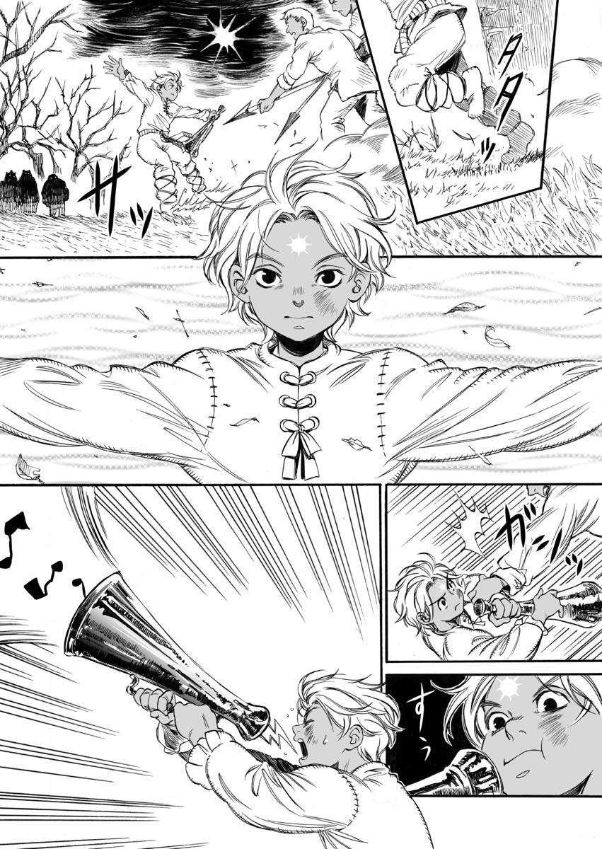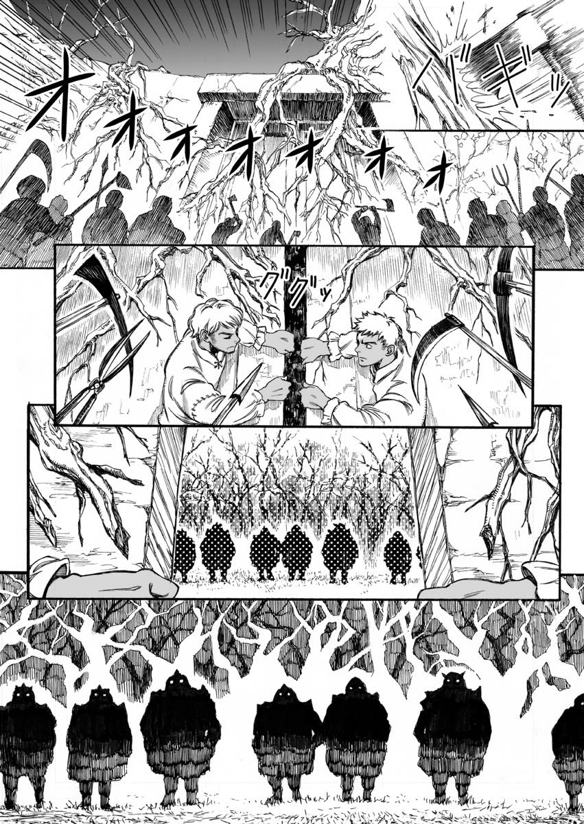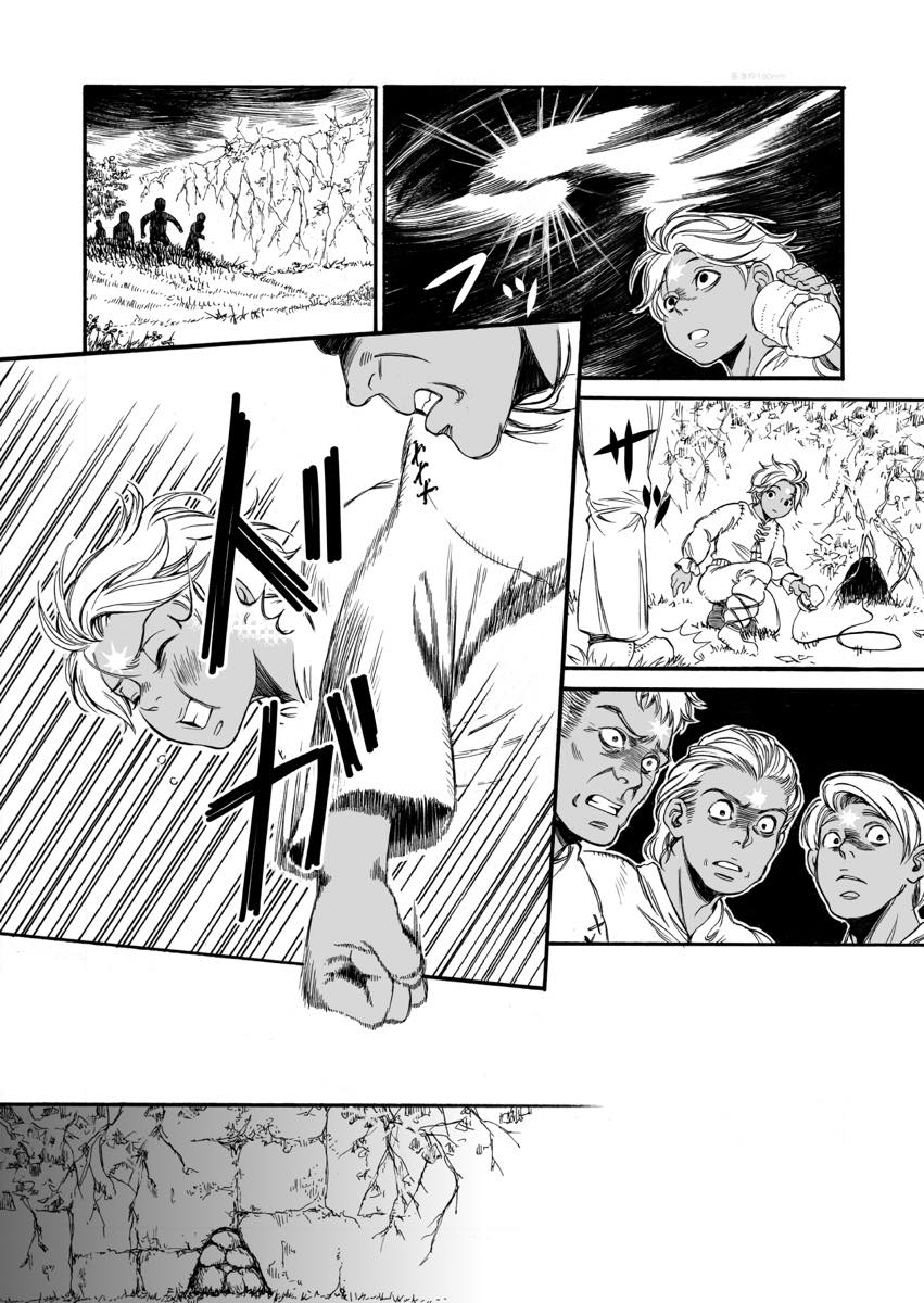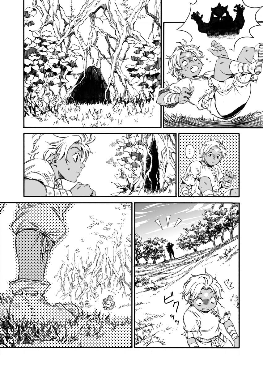 | “My favourite part is the last page where the heroine, now grown up, still carries the scars of her brave action that made the 2 races to eventually develop mutual understanding. The gray speech balloon represents that even their language changed to something they share, neither light nor dark.” | |