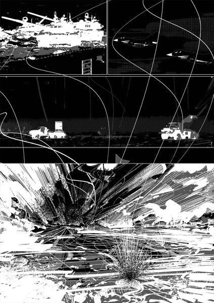 “This is my first experience in drawing “comics/manga”. I didn’t have much time to think through everything as best as possible since I didn’t immediately see this contest. However, having learned the topic, I couldn’t pass by, because I myself live in the belligerent country which was insidiously attacked by the neighbor. I personally witnessed what was accompanying this process, how a huge number of people were turned into ugly monsters who were ready to easily justify any crime; how simply the people’s picture of the world was turned upside down after skillfully addressing their emotions by the media. For the first time, since the Second World War, the integrity of the established borders was violated. Now that high technologies are designed to make our lives easier, they are making us more primitive and at the same time more vulnerable than ever to such manipulations. They are constantly fighting for our minds, trying to convince us of something, but now it has become much easier to do, because we are constantly in touch, being fed with a huge amount of information every day. My work is just about that great responsibility that lies on our shoulders when we pick up gadgets because without realizing it at that moment we become participants in a large-scale war. Our frivolous attitude to information makes us accomplices in massacres and harassment, both far from us and, sometimes, in our own home. The truth is that even the ability to work with information, the knowledge of how propaganda (PR) works, what cognitive distortions, logical errors, and the ability to see complex connections are, unfortunately, cannot save us from such a sad outcome, because life in the world is not a given, as we are accustomed to mistakenly accept it, but a tremendous work! Apparently, we, humanity, are not yet ready to fully realize this.”