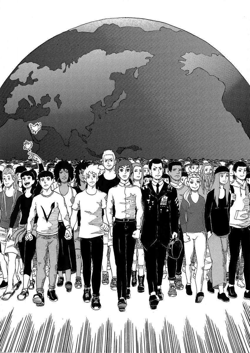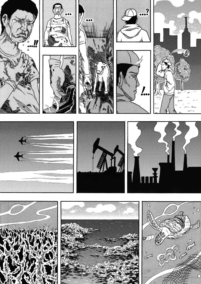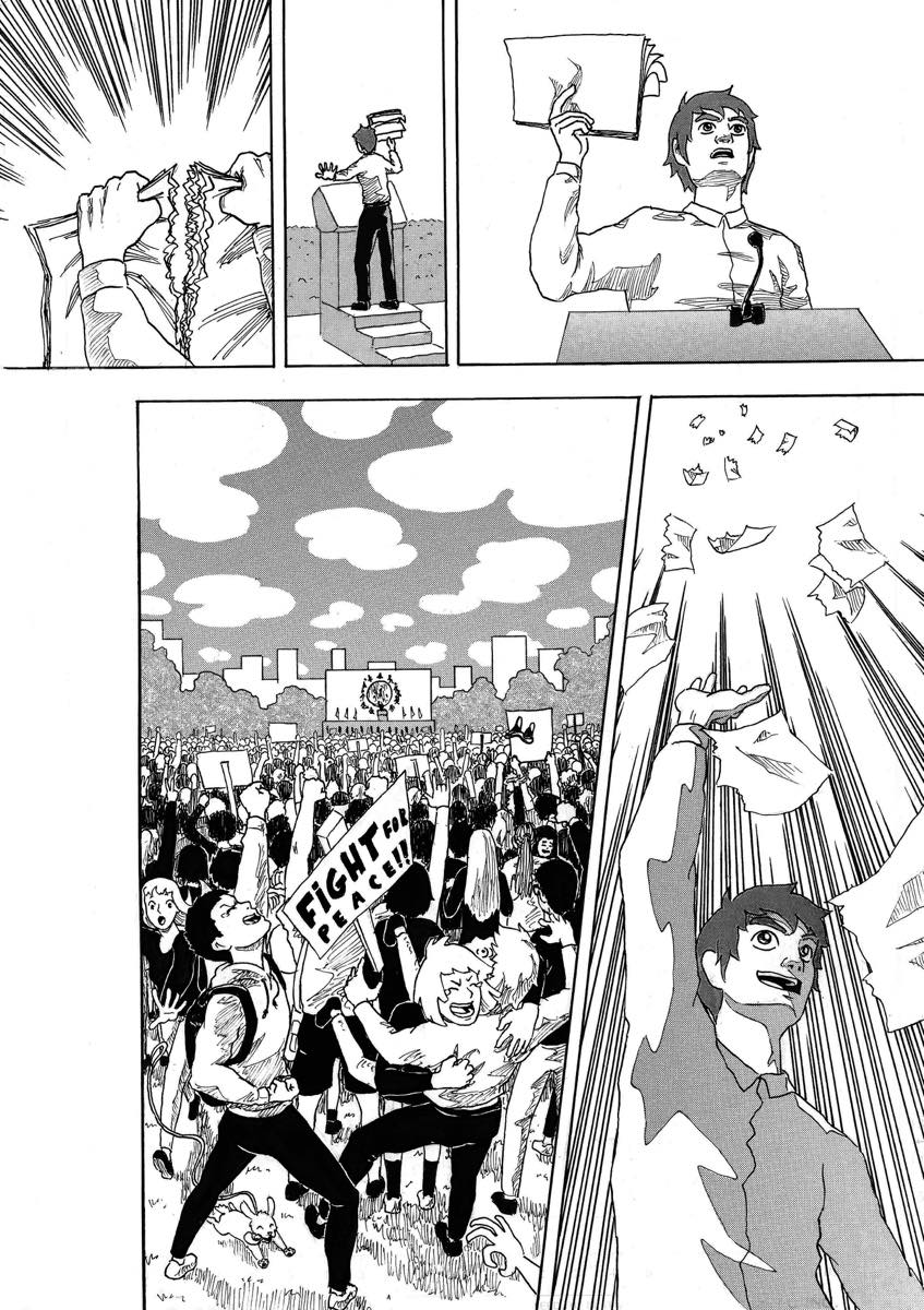 | “It has been tough for me to look at the world without grief these past few months. I have a very strong political opinion on how the leaders of today are not doing nearly enough to fight climate change and to bring solutions to the many unnecessary ongoing man made problems that keep damaging the world every single day. Although I don't get too deep into it, this manga was my way to rebel. My favourite part is right after the politician lady gets handcuffed, when the main character takes her regime, shreds it to pieces and throws it into the air. Although it is open to interpretation, I feel like he is stating "we've had enough of this!". The crowd celebrating afterwords is truly how I feel about that scene.” | |