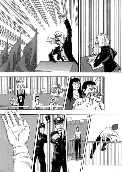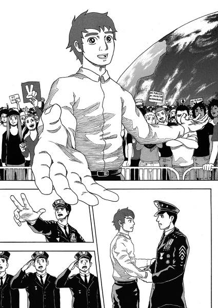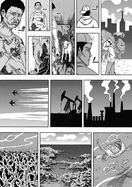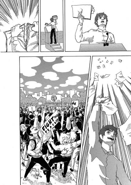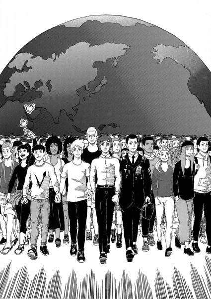 “It has been tough for me to look at the world without grief these past few months. I have a very strong political opinion on how the leaders of today are not doing nearly enough to fight climate change and to bring solutions to the many unnecessary ongoing man made problems that keep damaging the world every single day. Although I don't get too deep into it, this manga was my way to rebel. My favourite part is right after the politician lady gets handcuffed, when the main character takes her regime, shreds it to pieces and throws it into the air. Although it is open to interpretation, I feel like he is stating "we've had enough of this!". The crowd celebrating afterwords is truly how I feel about that scene.”