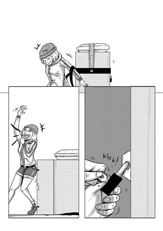 “when she goes through all of obstacles to make sure the box she deliveries will arrived.”