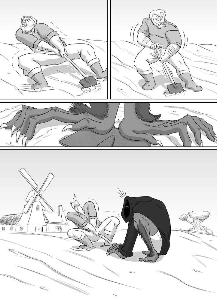 | “Hello dear readers! Thank you for reading. I hope you like my SMA entry. This comic is about the spirit Blue Gerrit. Blue Gerrit is one of the Dutch versions of spirits who sit on people's shoulders and become heavier and heavier. But Gerrit is not an evil spirit. While he likes to play pranks on people, he'll always help people when they're in danger.” | |