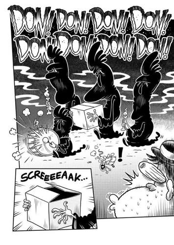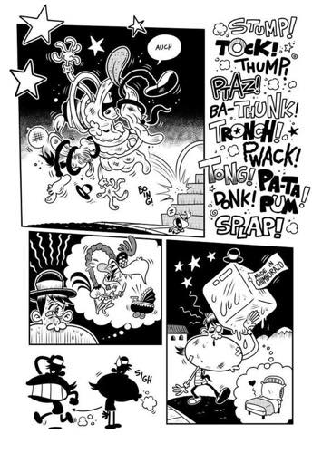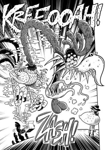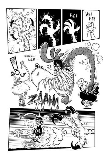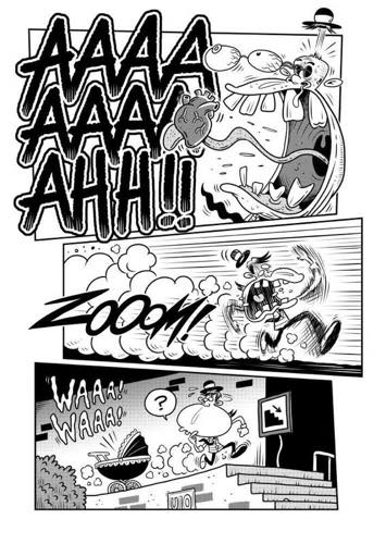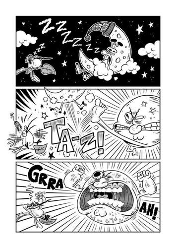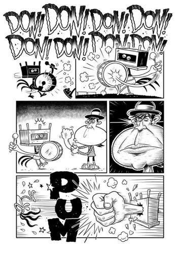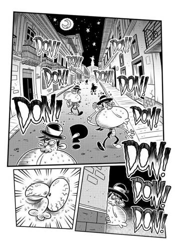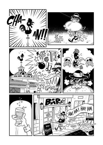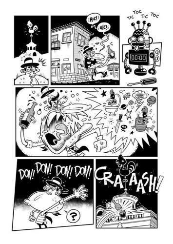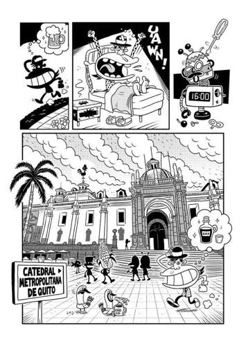 “This story is loosely based on "El Gallo de la Catedral" (Rooster of the Cathedral), a very old and popular urban legend from Quito. I also added elements from other Ecuadorian scary myths, namely "La Caja Ronca" (The Hoarse Box) from Ibarra and "El Uñaguille" (The Demon Baby) that is a common tale throughout the Andean region of my country. "Chumado" is a Quiteño slang term for "Drunk". The little mask on the clock robot is called "Aya Uma" (Head of Power), it's a very important character in our indigenous tradition.”