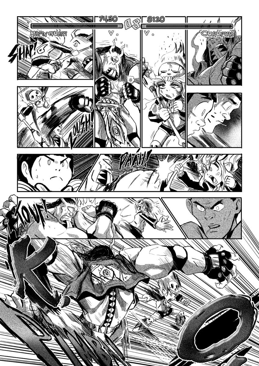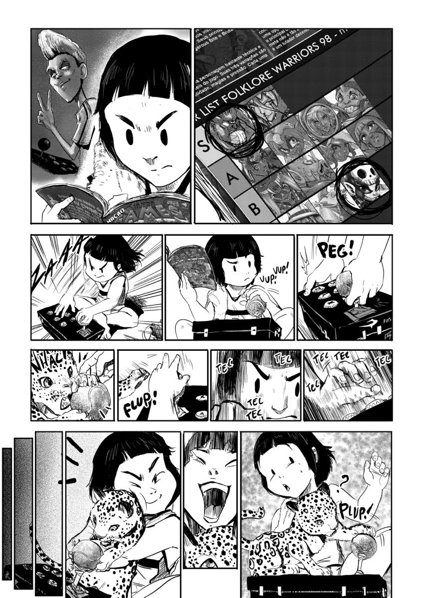 | “This story is a special tribute to not just the Brazilian Folklore but i tried to pass the feeling of being a kind in the end of the 90s, early 2000's. Having a crew, playing, having fun, and being competitive in arcades. Something that a live and a bet that a lot of readers that are youngs at both decade have similar experiences.” | |