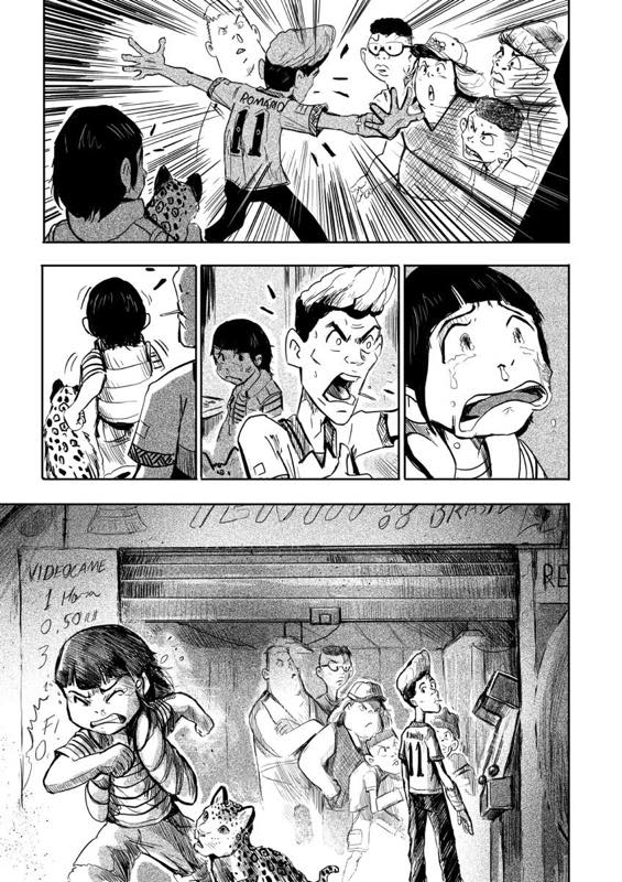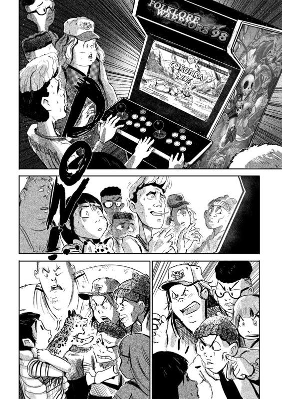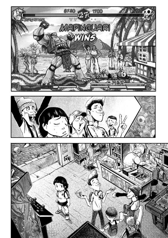 | “This story is a special tribute to not just the Brazilian Folklore but i tried to pass the feeling of being a kind in the end of the 90s, early 2000's. Having a crew, playing, having fun, and being competitive in arcades. Something that a live and a bet that a lot of readers that are youngs at both decade have similar experiences.” | |
