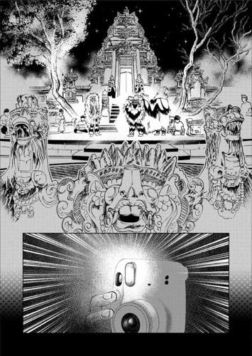 | “Once upon a time, a tourist visited Bali, then becoming a part of the clash between the symbol of good and evil in Balinese mythology, Barong and Rangda.” | |
