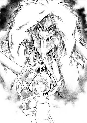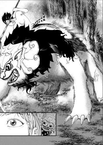 | “Barong emerges to help the tourist girl when being chased by Rangda.” | |
