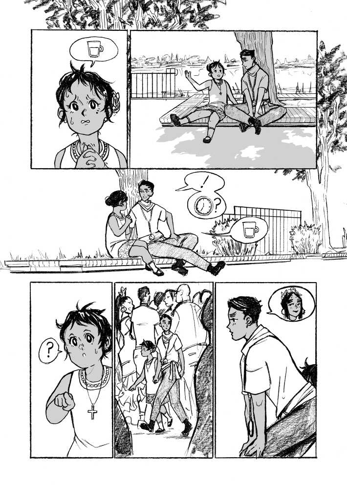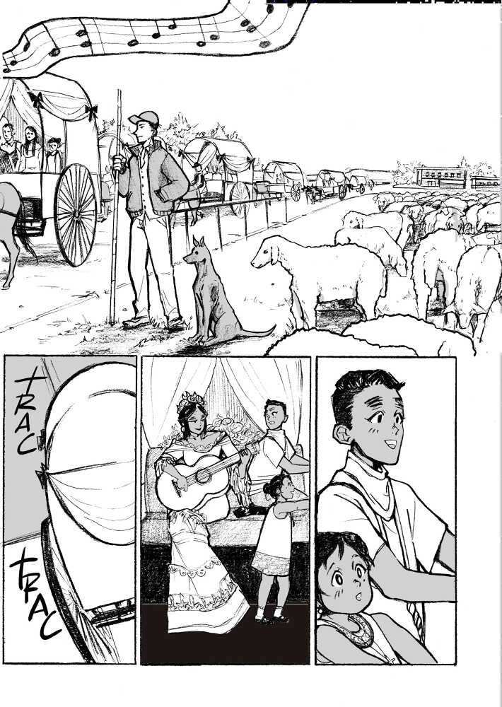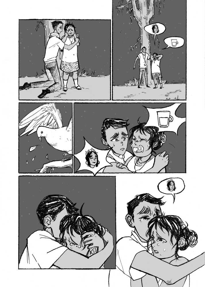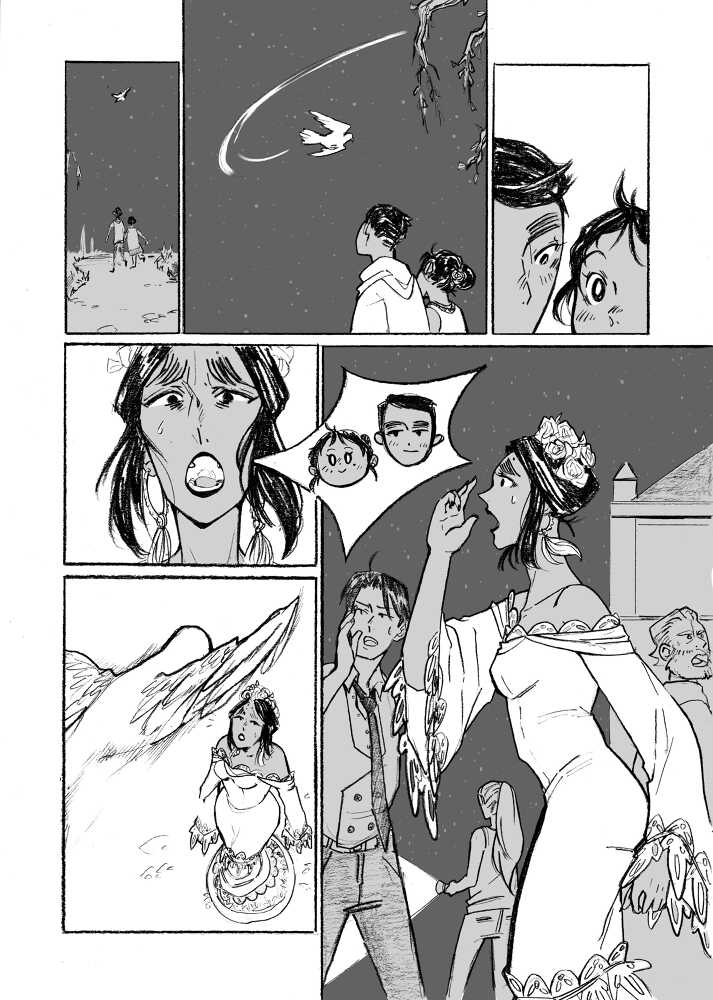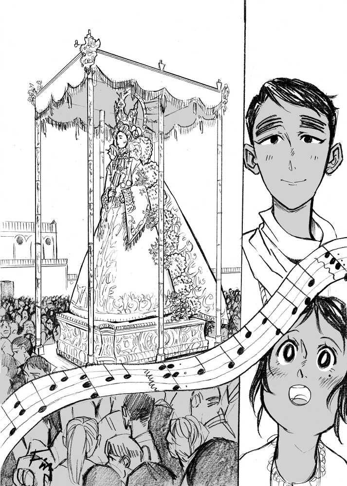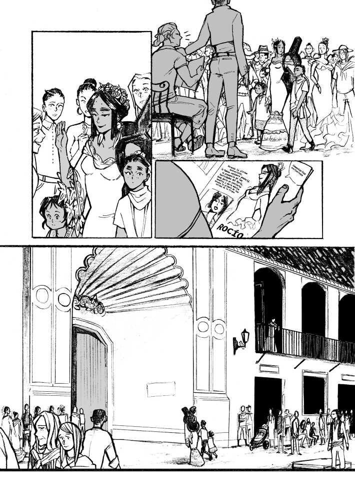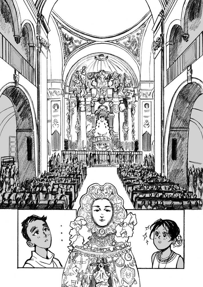 “This is a story about the Virgen del Rocío, the local patroin saint of Huelva. She is very popular and lots of people gather each year to pay respects and celebrate. ¨¨White Dove¨ and ¨Queen of the Marshlands¨ are her two other titles. They are a couple of legens about her, but I decided t create my own including elements of the previous ones, so this is an original tale.”