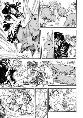 “i thought leaving such characters nameless is kinda sad, so let me tell you their names, the little girl is Tinhinan, her elder brother is Idir and the adopted son of Tteryel is Amayes. The legend says that Tteryel adopted a human kid, and no one knows why she didnt eat him like the other kids, but i beleive its a sign that tteryel is not too evil. However, there was always wars between her and humans, and no one knows who could win!!”