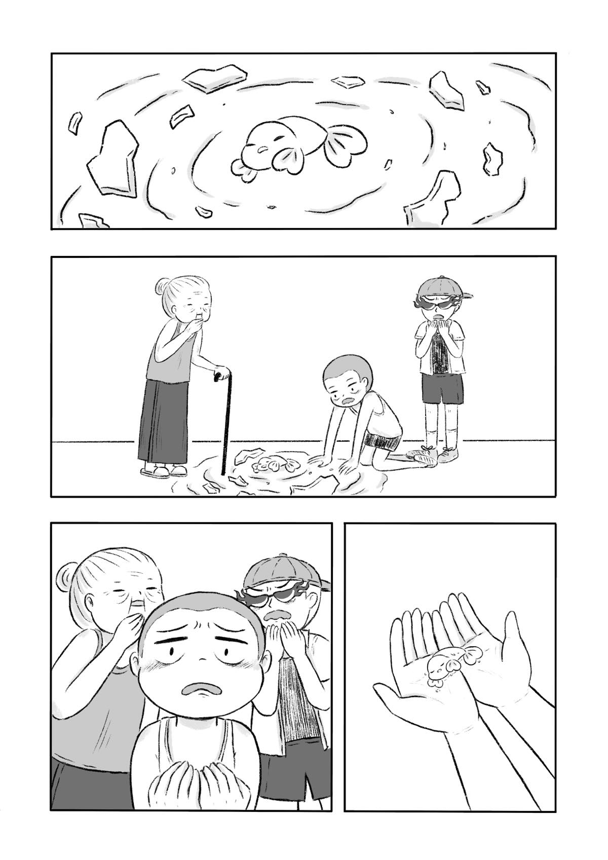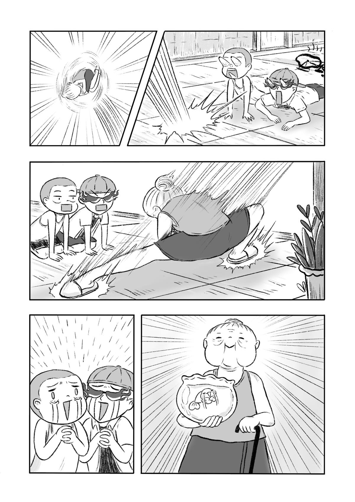 “We (Ayaya is a pen name that consisted of my girlfriend and me, she did all the drawing and I wrote the storyboard!) are so sorry if you have a fish pet back at your home. No animals were harmed in the making of this Manga. (Welp, we have eaten some steamed fish when we were hungry though..)”
