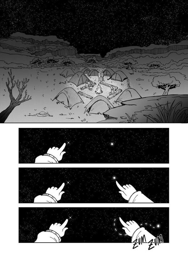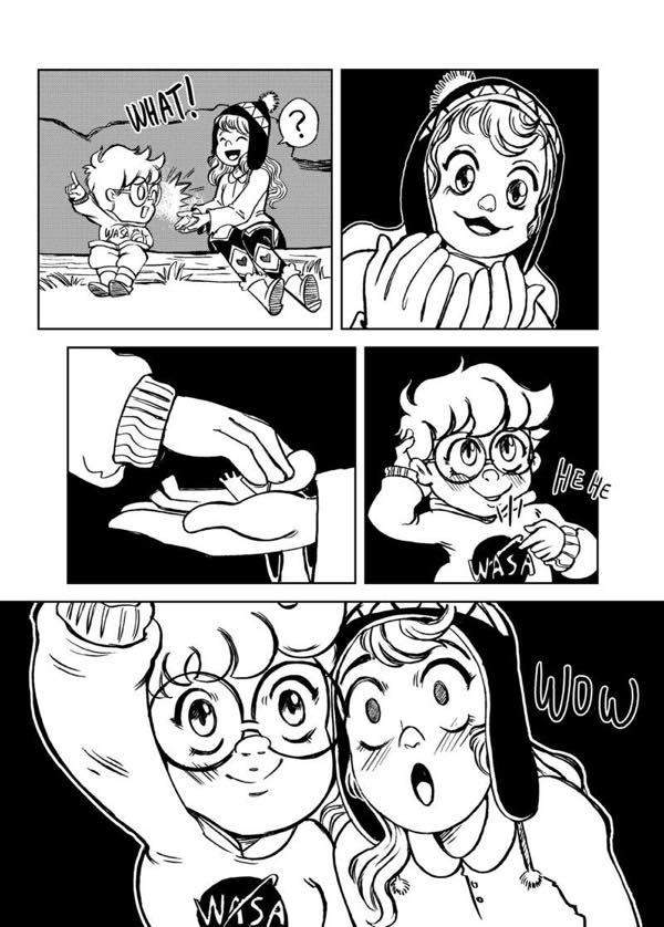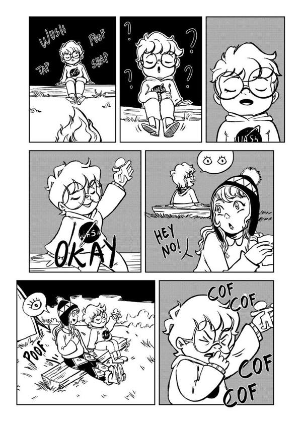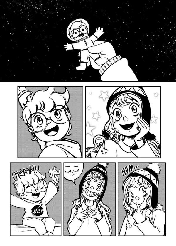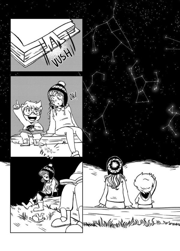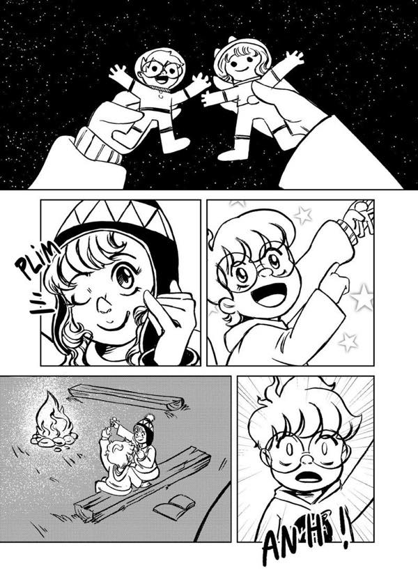 | “I have two favorite parts. The first one is in the beginning, when the characters are laughing because of the misunderstanding with the fireflies. The second one, at the end, when she is about to jump into space, I really enjoyed realizing how much the character developed.” | |