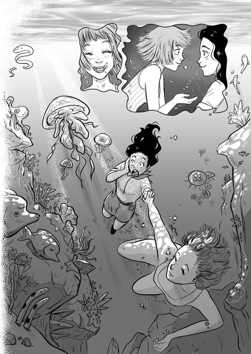 “My favourite part is in the middle of the story, when the main character is drawn into the water – a surreal or irreal world. The water can be seen as a symbol for emotional security, healing and spiritual cleansing. For a moment the main character forgets all her sorrows - the inner journey begins.”