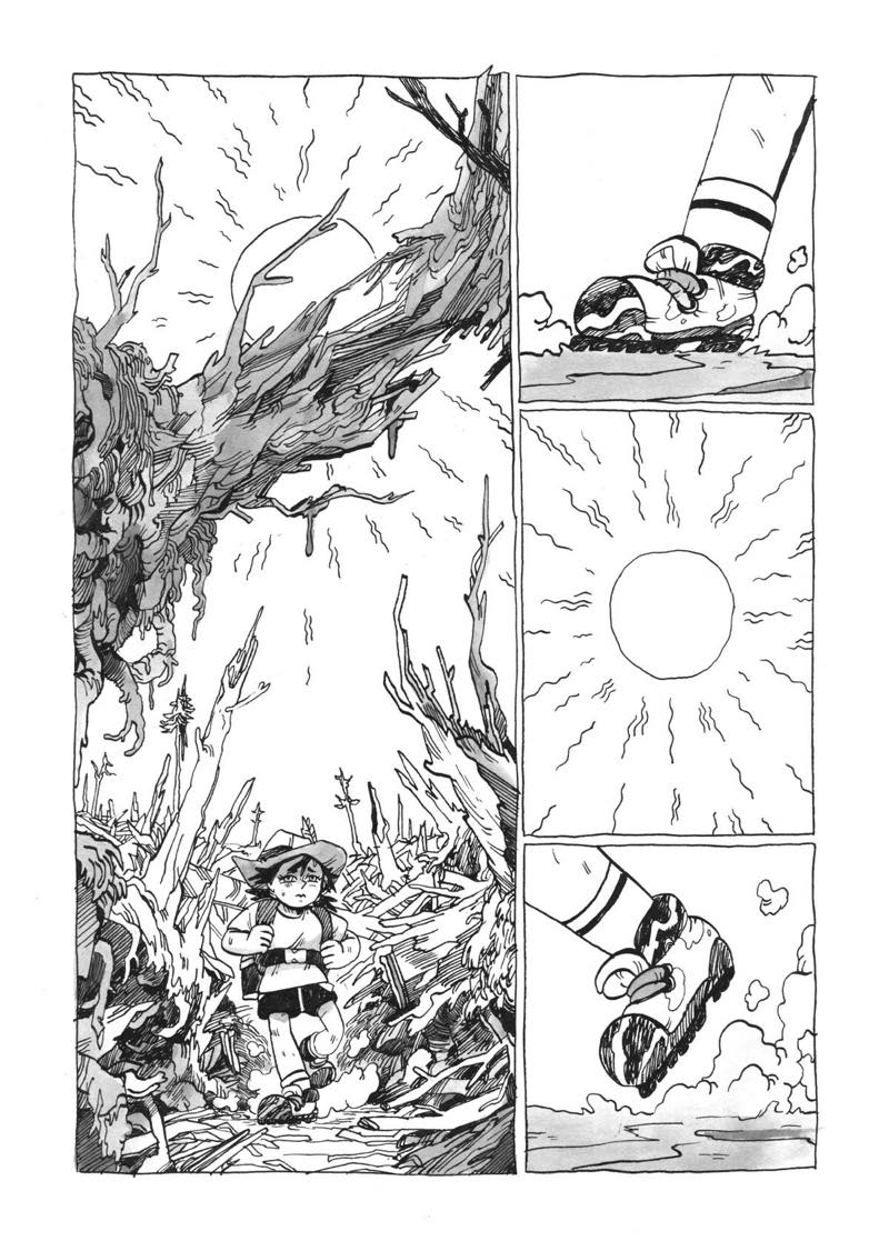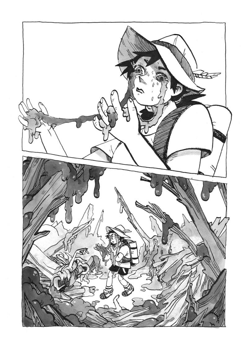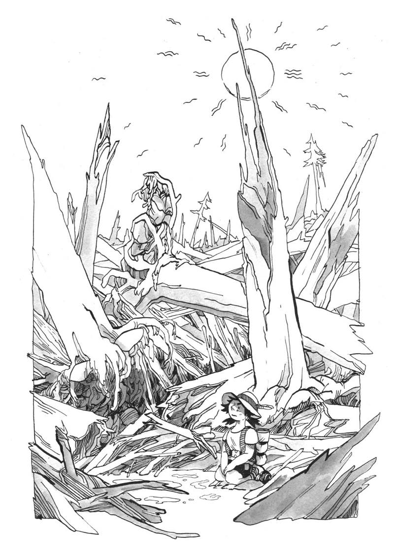 “I tried to draw feelings of the place. The forest in ruins is crying. Crying out memories of the terrible storm. Crying so much that it even reaches the mind of the traveler that is just passing through this calamity.”