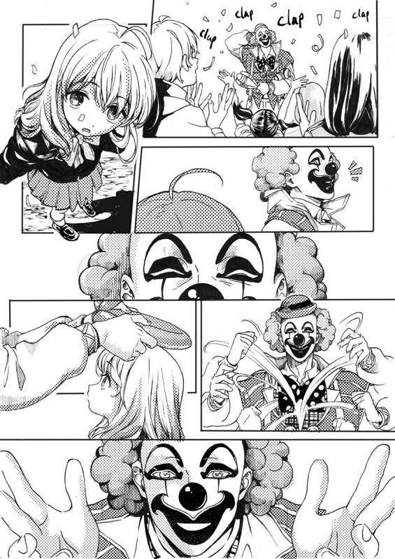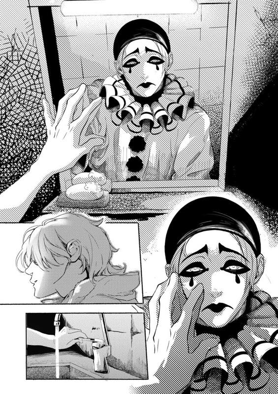“Pierrot, the "sad clown" from the Italian commedia dell'arte. Despite of the main character being a happy, joyful and colorful clown, he only see himself as Pierrot, the reflection he saw in the mirror.”