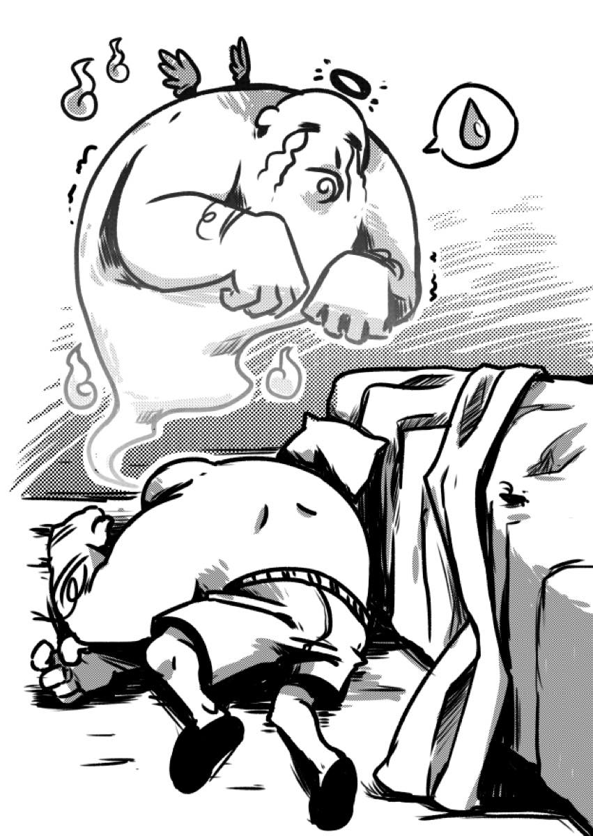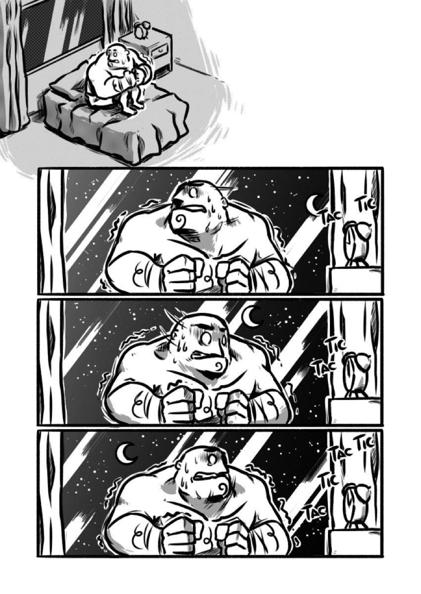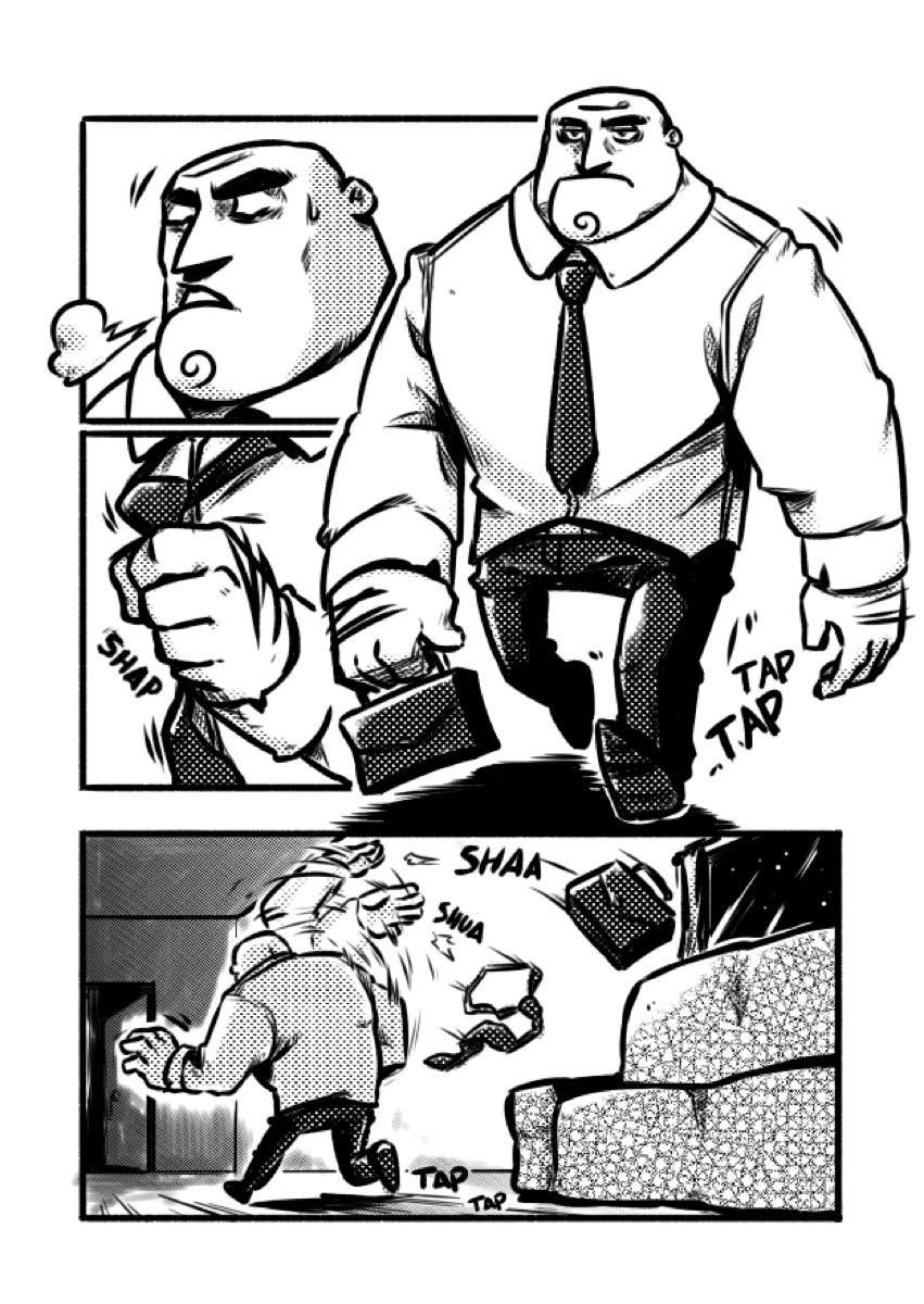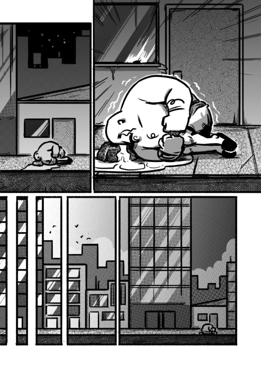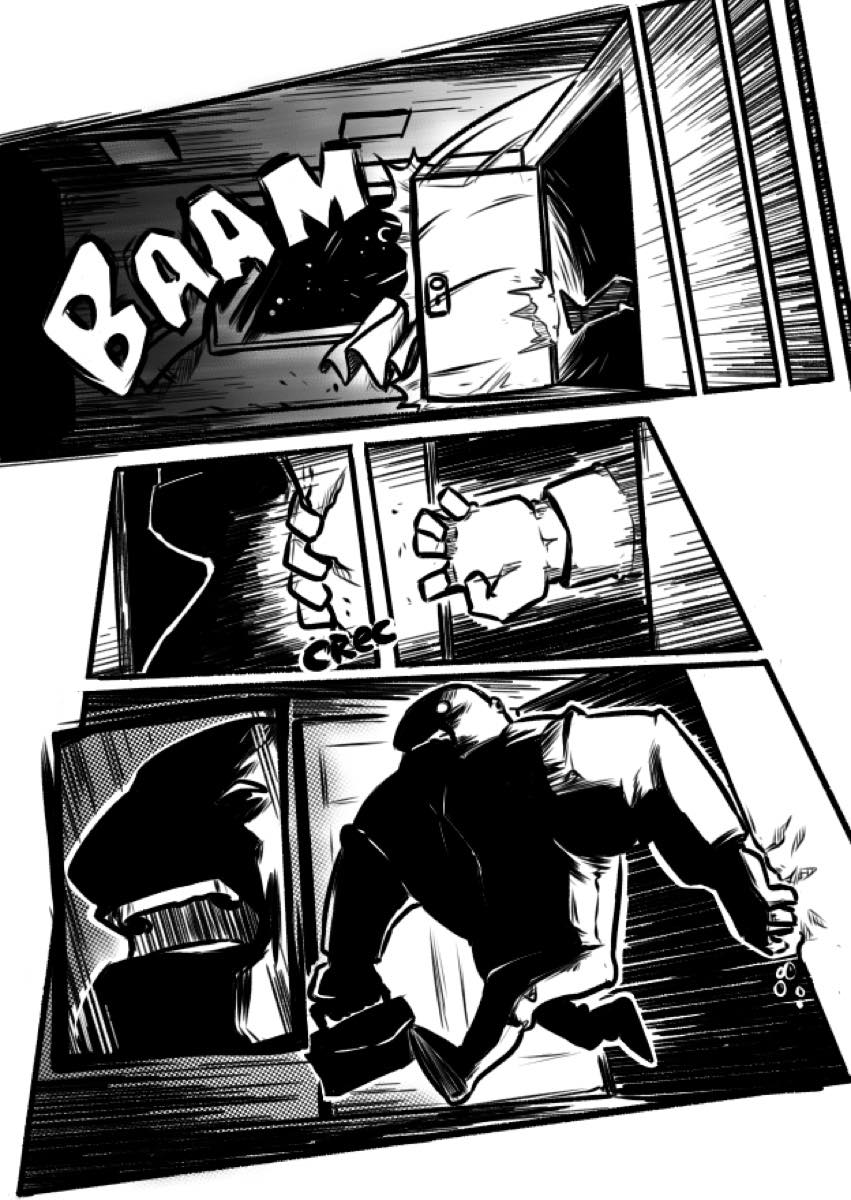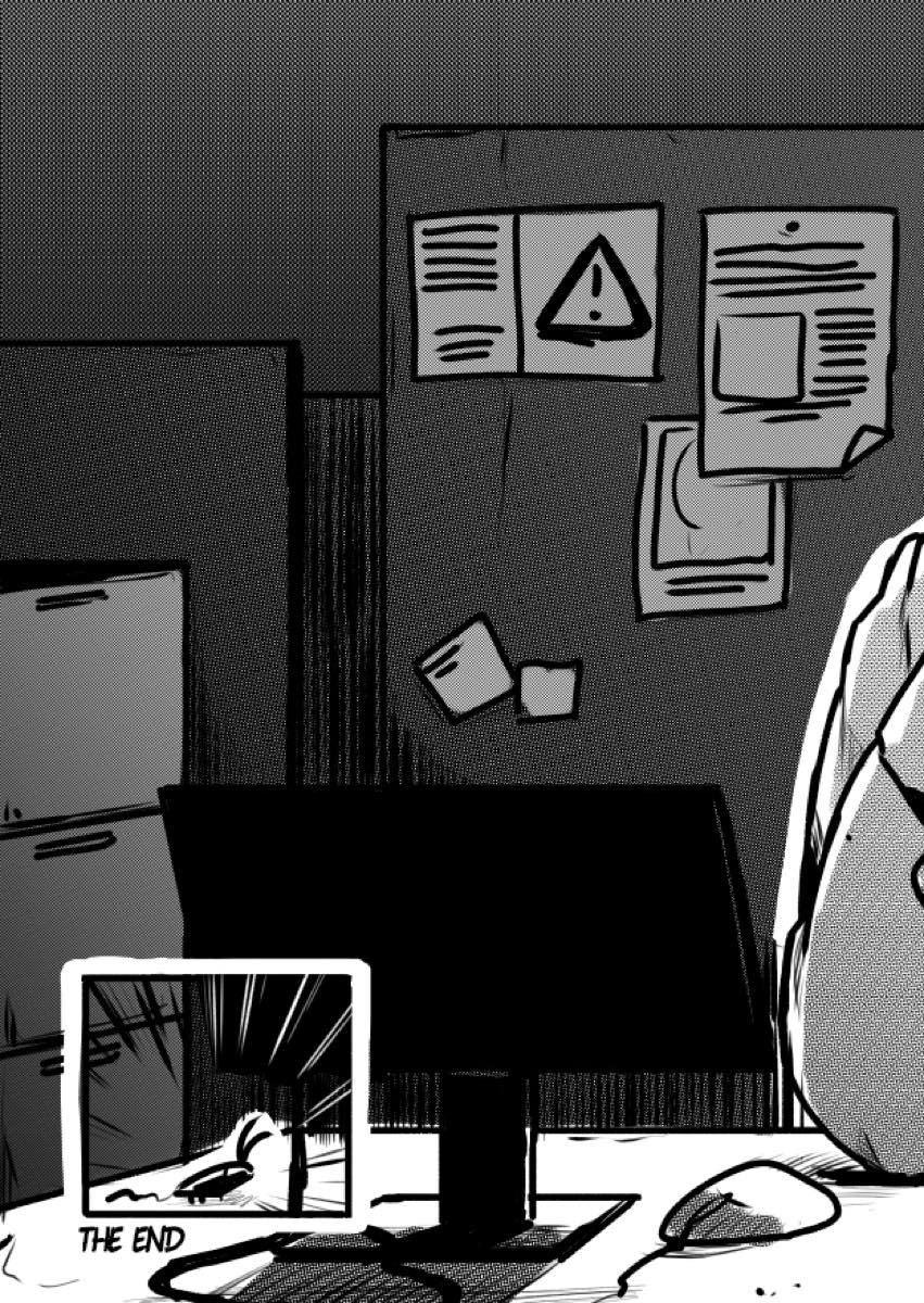 | “My favourite part is (without any doubts) my character's faces of terror. I always laugh out loud when I read these exaggerated expressions in manga, so it was really funny to draw them in a one shot story.” | |