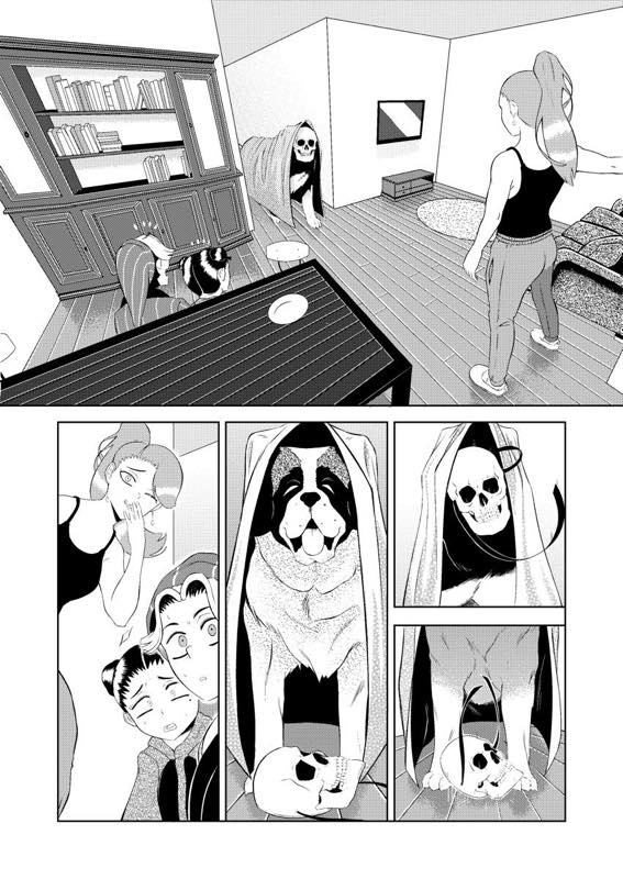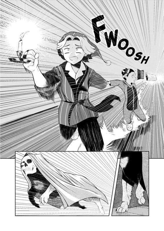 “My favorite part of the story is when the two siblings meet the skull-headed creature for the first time, it was a part that I really enjoyed drawing and I liked the double page spread result.”