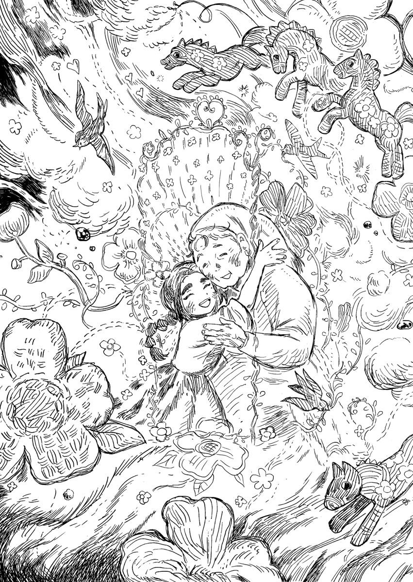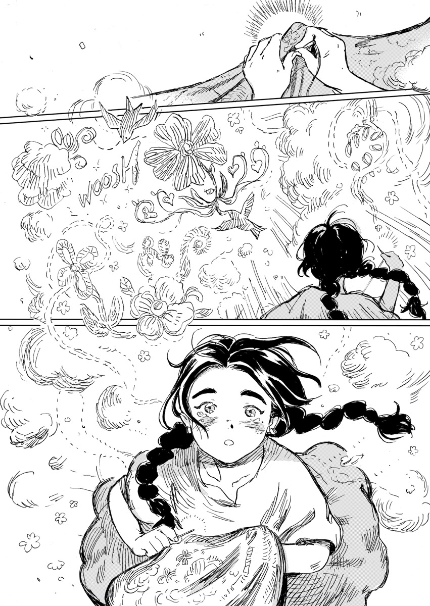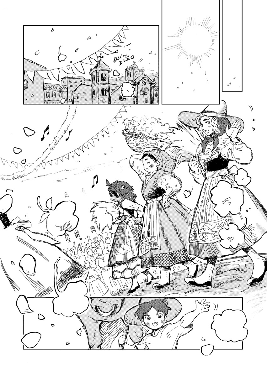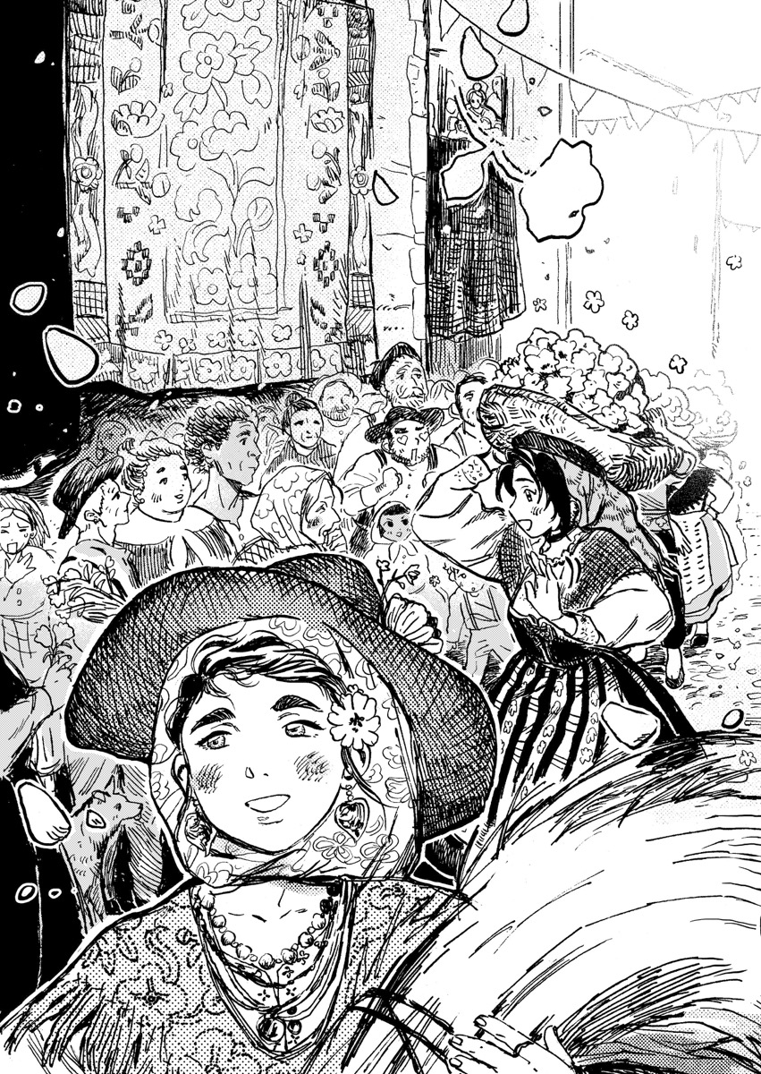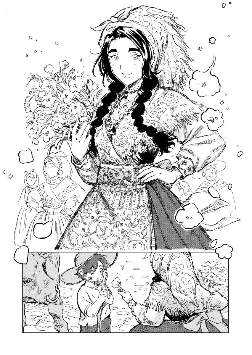 | “drawing the girl's expressions and the traditional types of dress! they're inspired in a type of folklore dress from my country.” | |