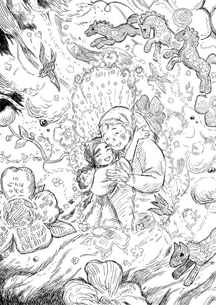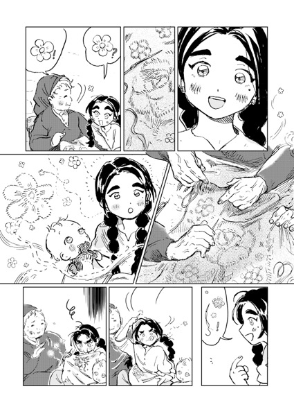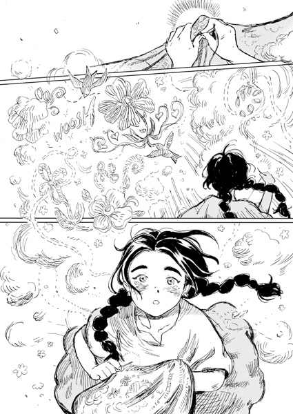 “drawing the girl's expressions and the traditional types of dress! they're inspired in a type of folklore dress from my country.”