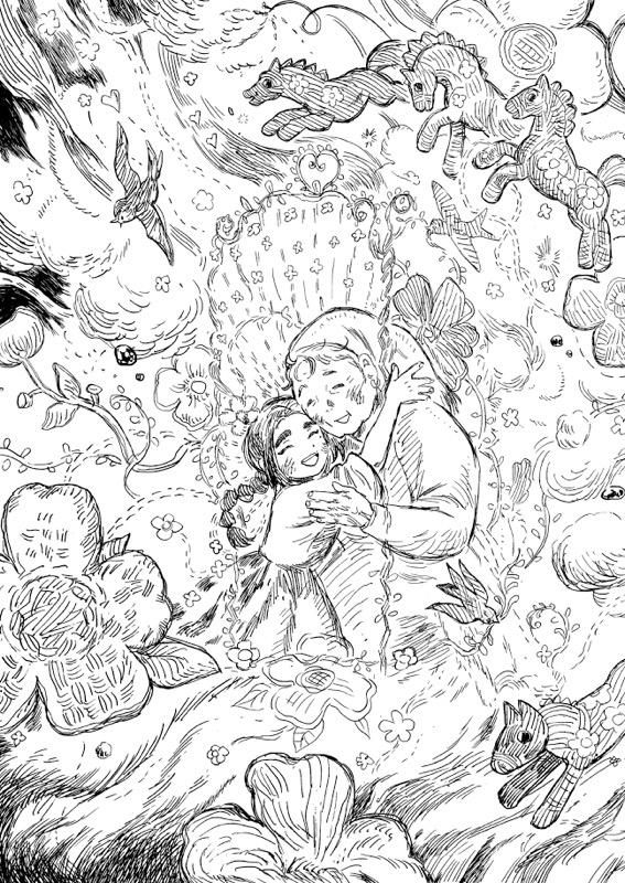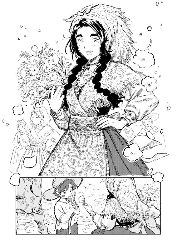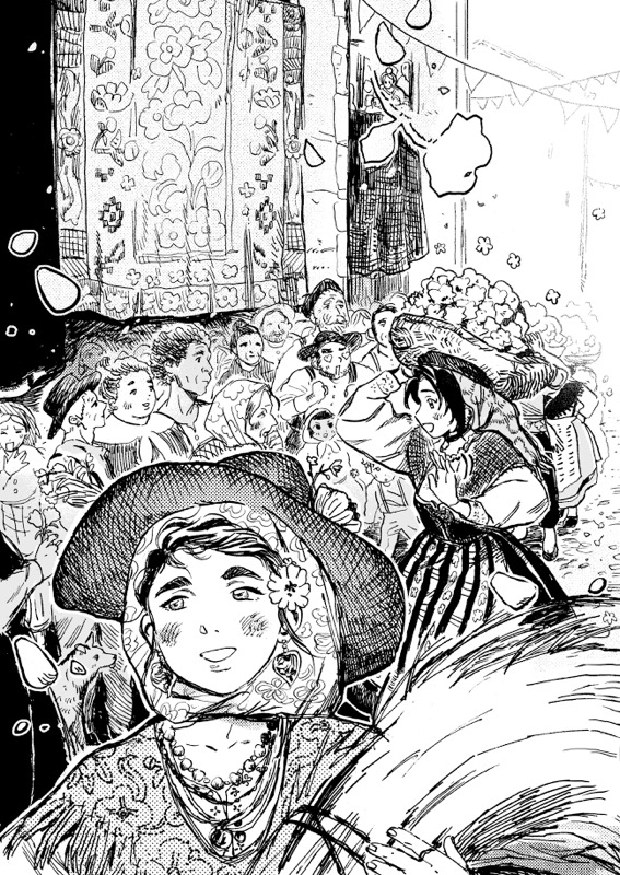 “drawing the girl's expressions and the traditional types of dress! they're inspired in a type of folklore dress from my country.”