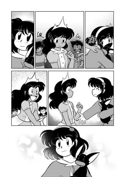 “I enjoyed the whole process, remembering old times that I spent with my best friend, the bond of the heroine and her best friend made me very happy to express those feelings through the manga.”