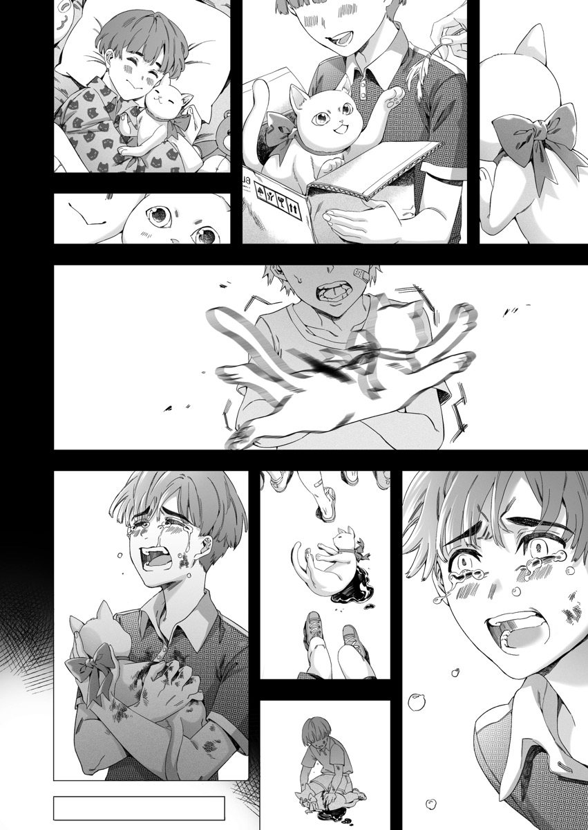 | “The part when the boy hugs the black Yokai cat. This part shows that he has no one else to count on except the black Yokai cat who tries to cheer him up.” | |